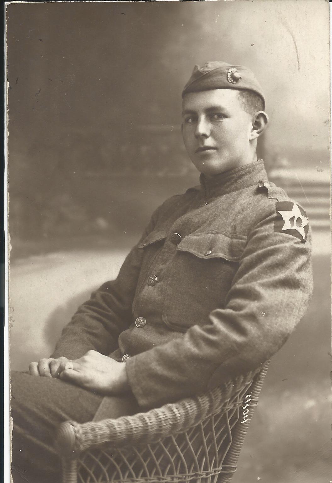 - Original postcard photograph of Klink in uniform with 1st Battalion 5th Marine Regiment uniform insignia visible.