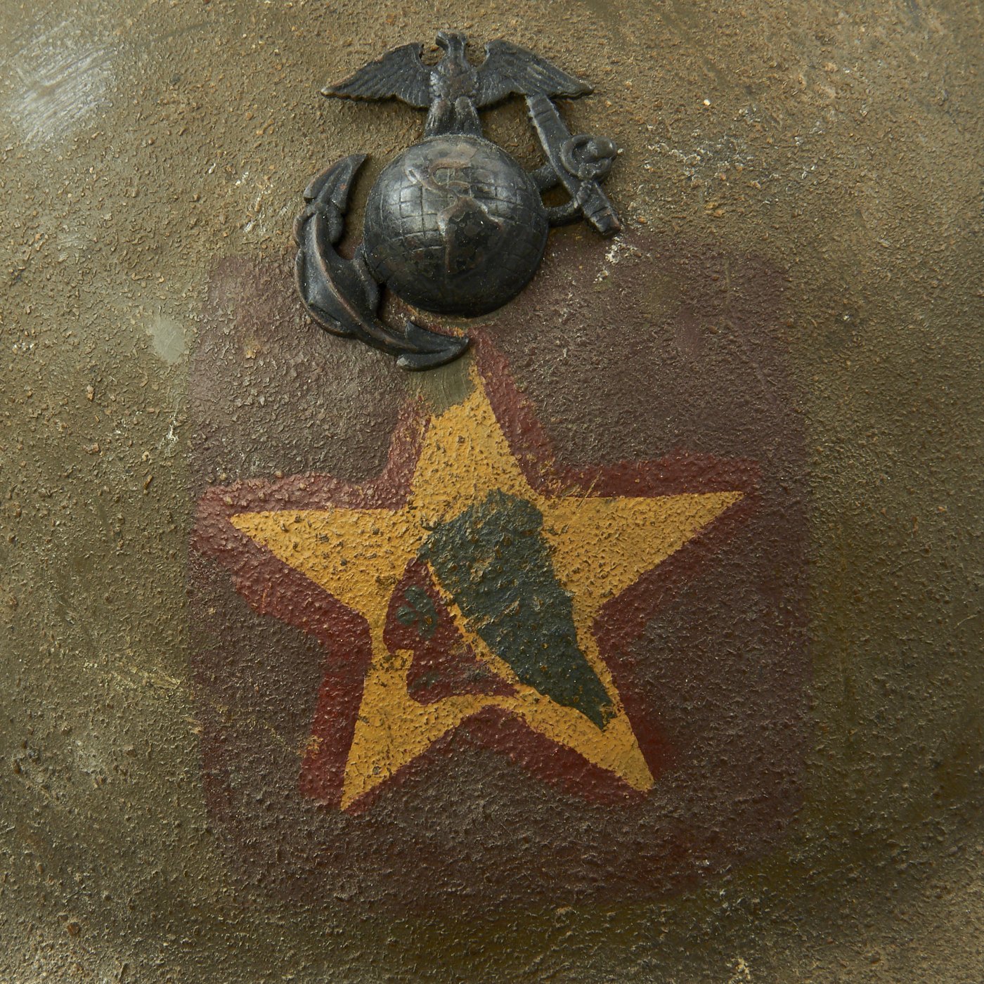 This is an wonderful RARE example of a genuine USMC Great War helmet, complete with divisional insignia, all original and ready to display!