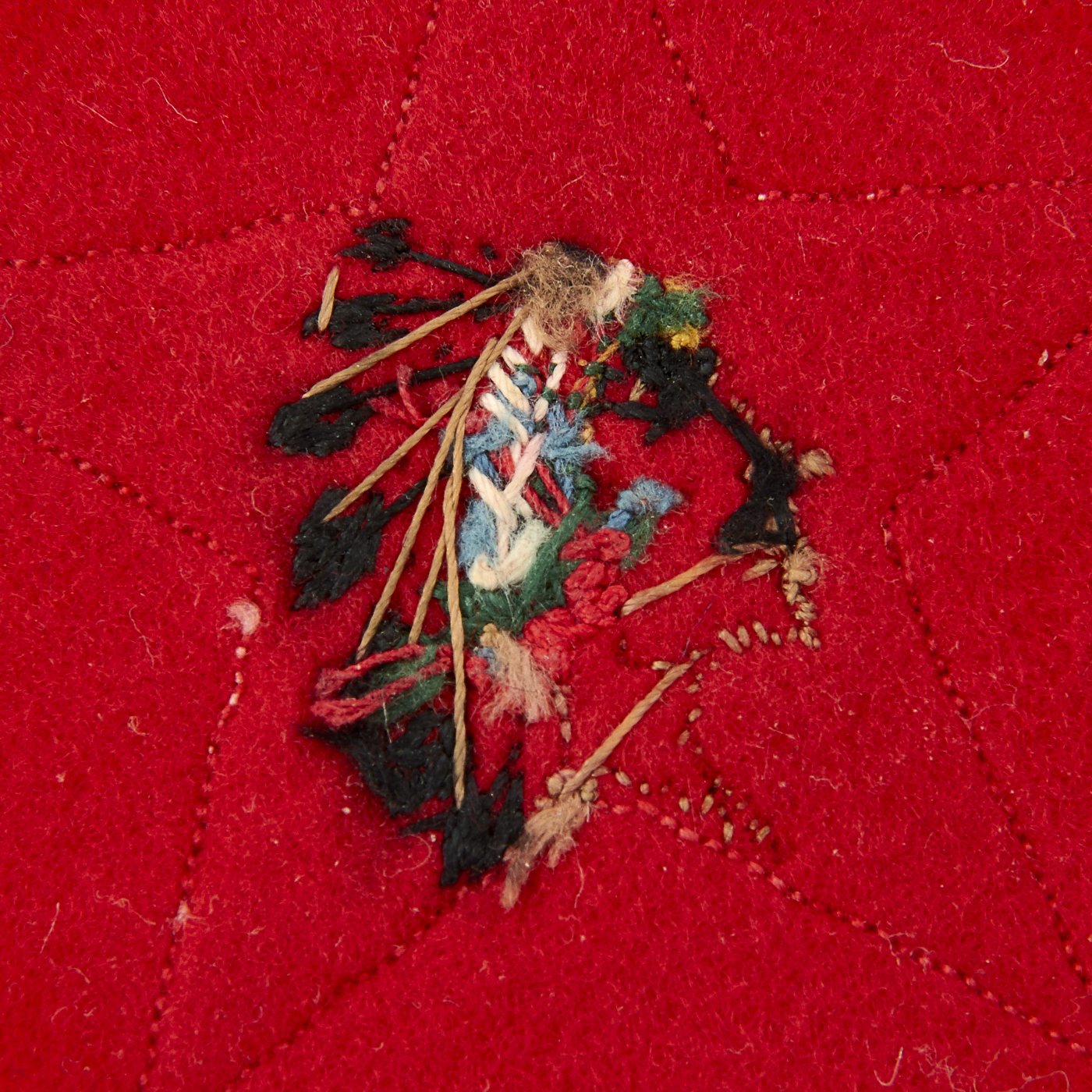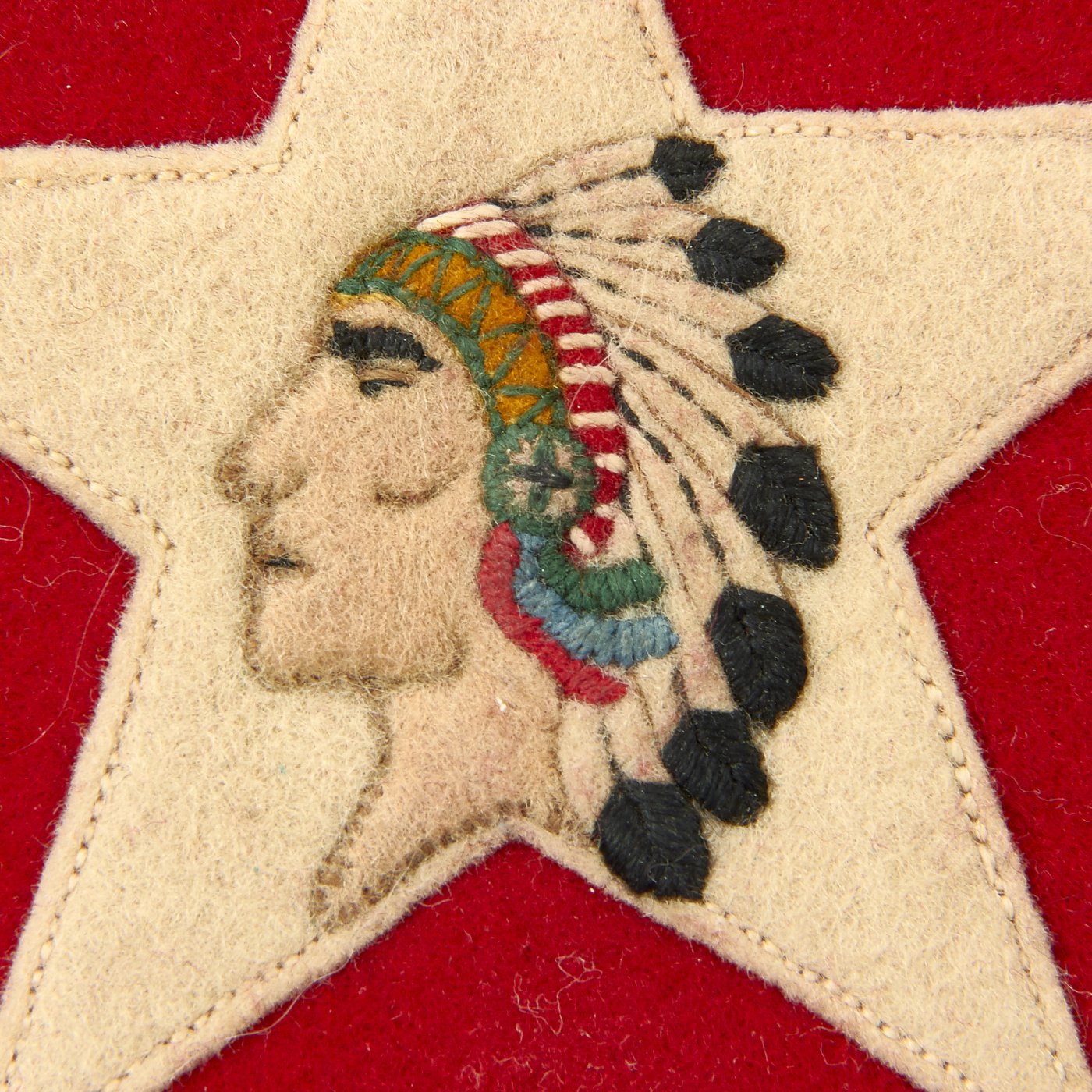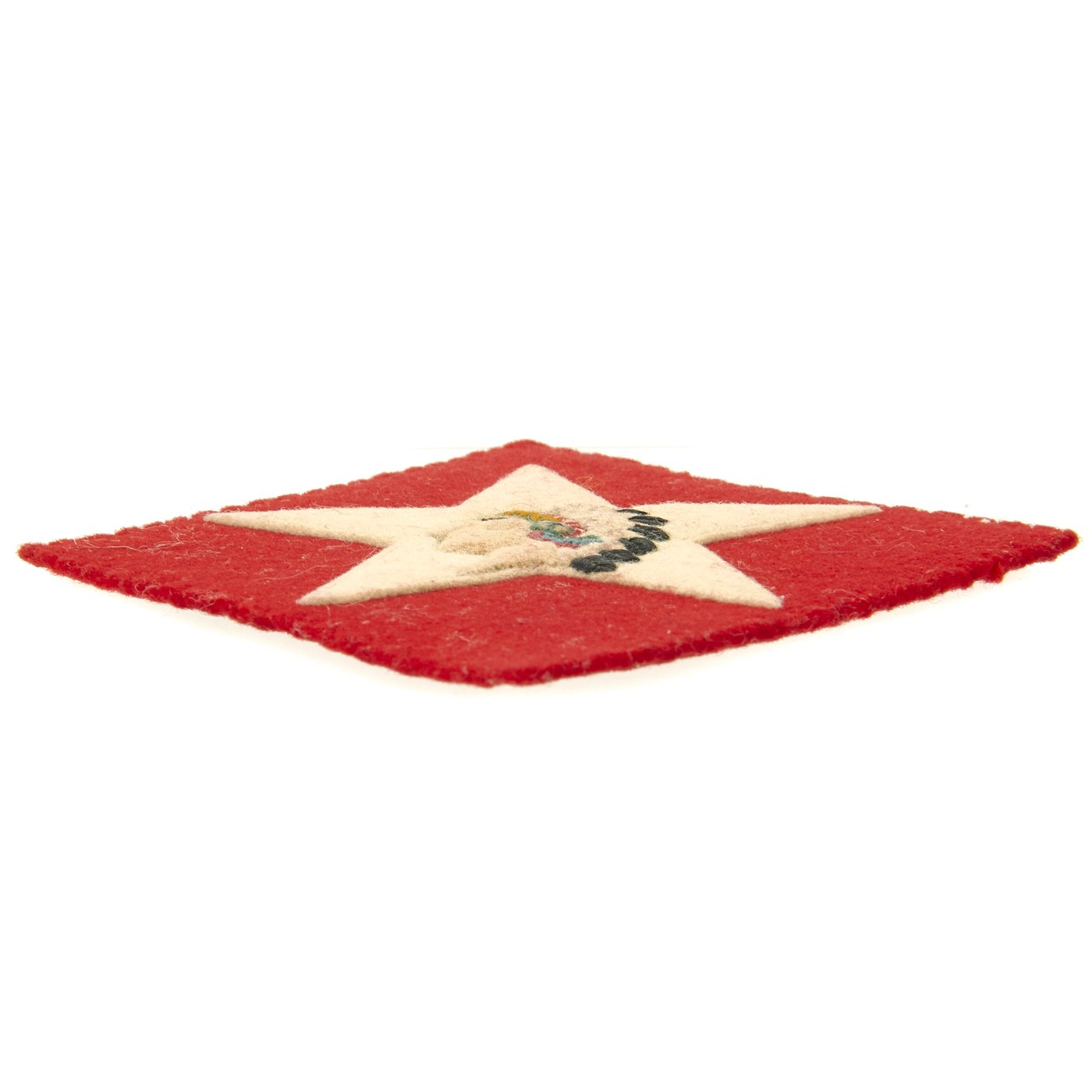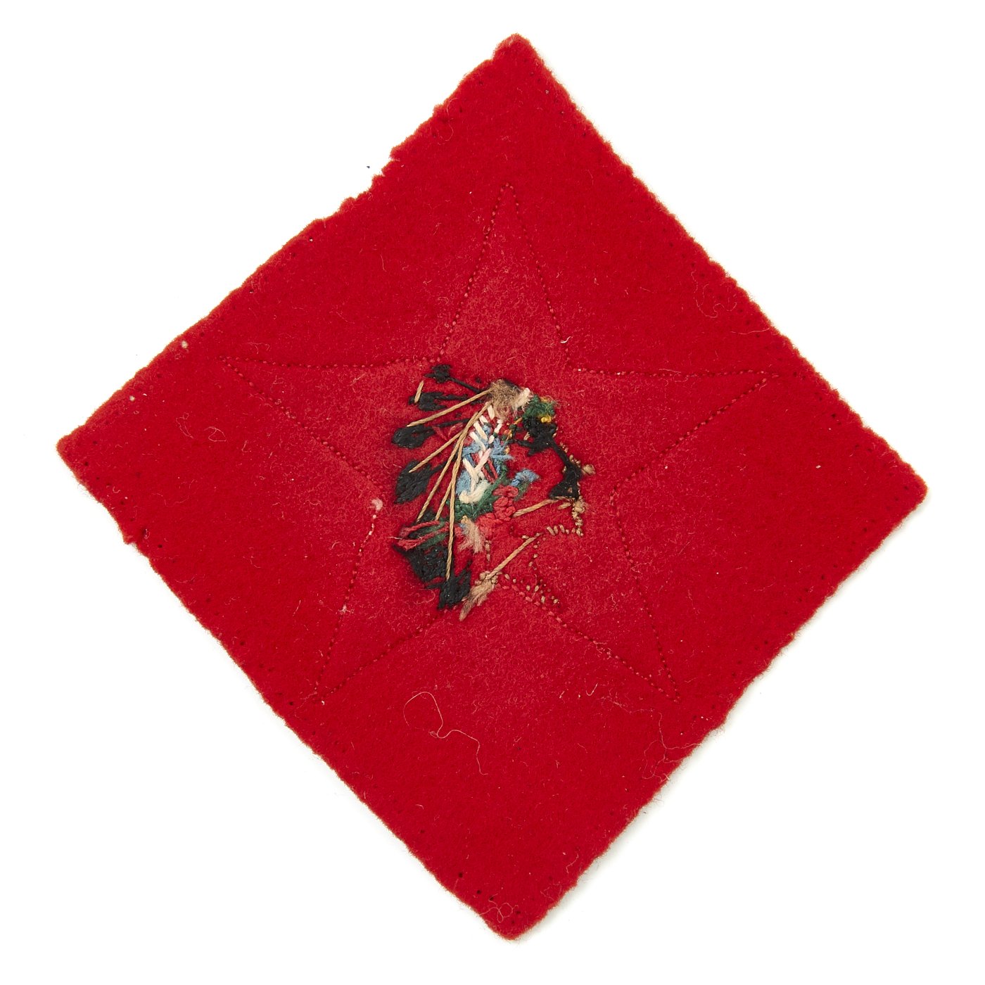 Original Item: Only One Available. This is an ultra rare uniform patch insignia from World War One for the 1st Battalion, 6th Marines. The patch features a red felt diamond background that measures 3 inches square, with white felt five pointed star and a beautifully highly detailed fully color embroidered Indian Head to the center. These patches are extremely rare and ones in this high grade excellent condition are close to impossible to find on the market.