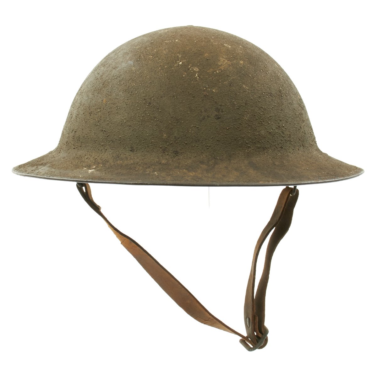 The M1917 is a near identical version of the British MkI steel helmet, and it is important to note that when the US joined the Great War in 1917 they were initially issued with a supply of around 400,000 British made Mk.Is, before production began state side. The M1917 differed slightly in its lining detail, and exhibited US manufacture markings.