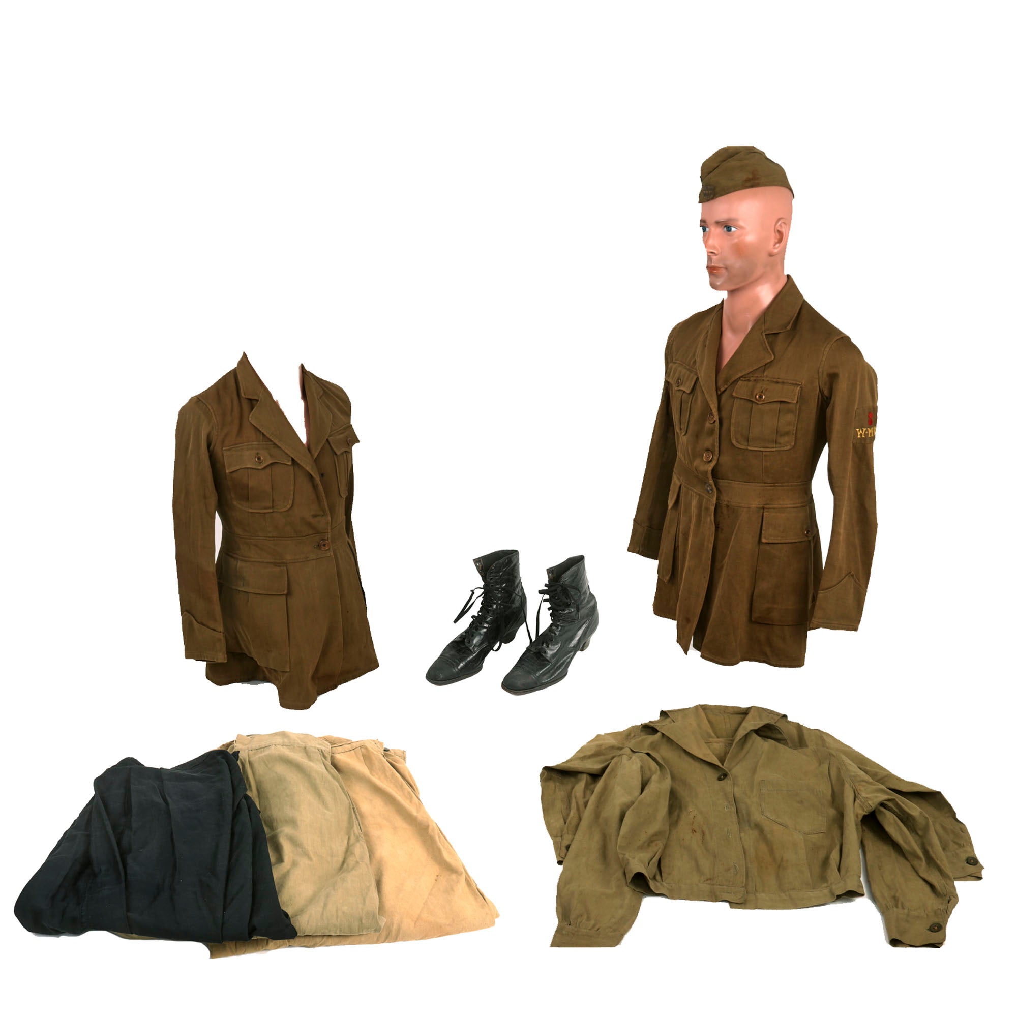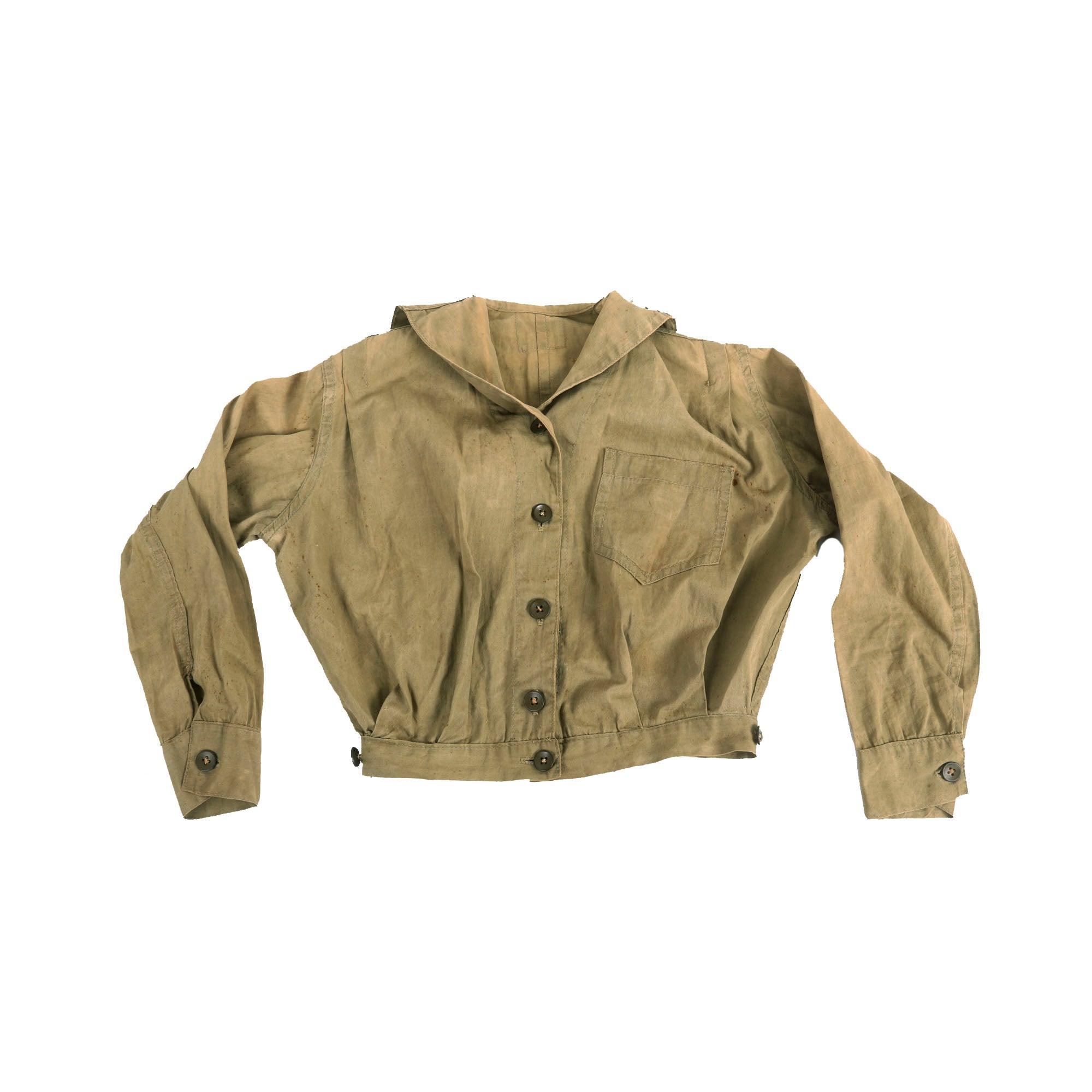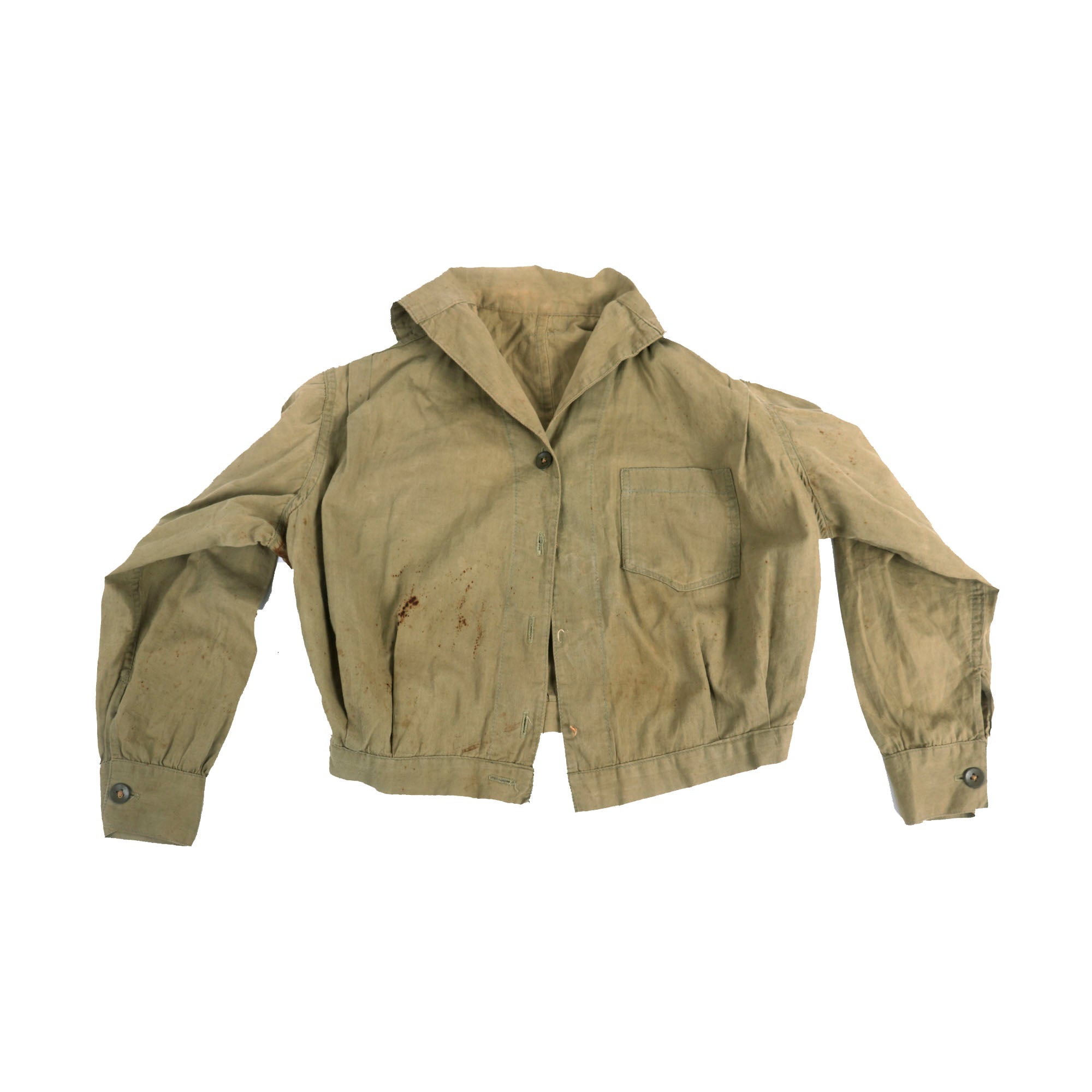 This is a one-of-a-kind set of women’s worker uniforms for a very small organization of women whose tenure within the factories only lasted a single month. You will almost certainly never see another set like this.