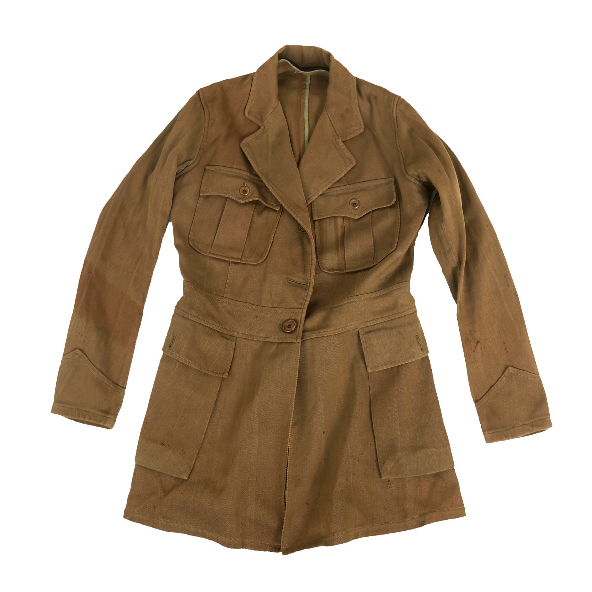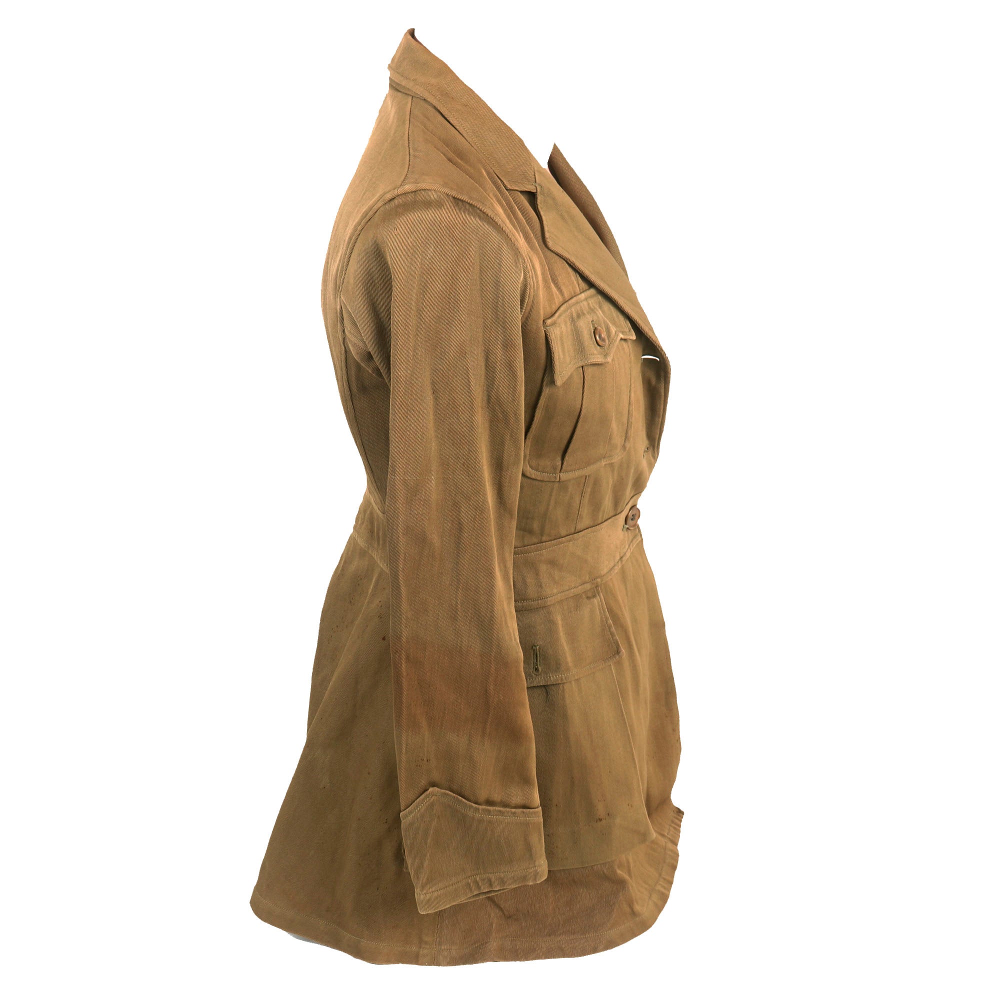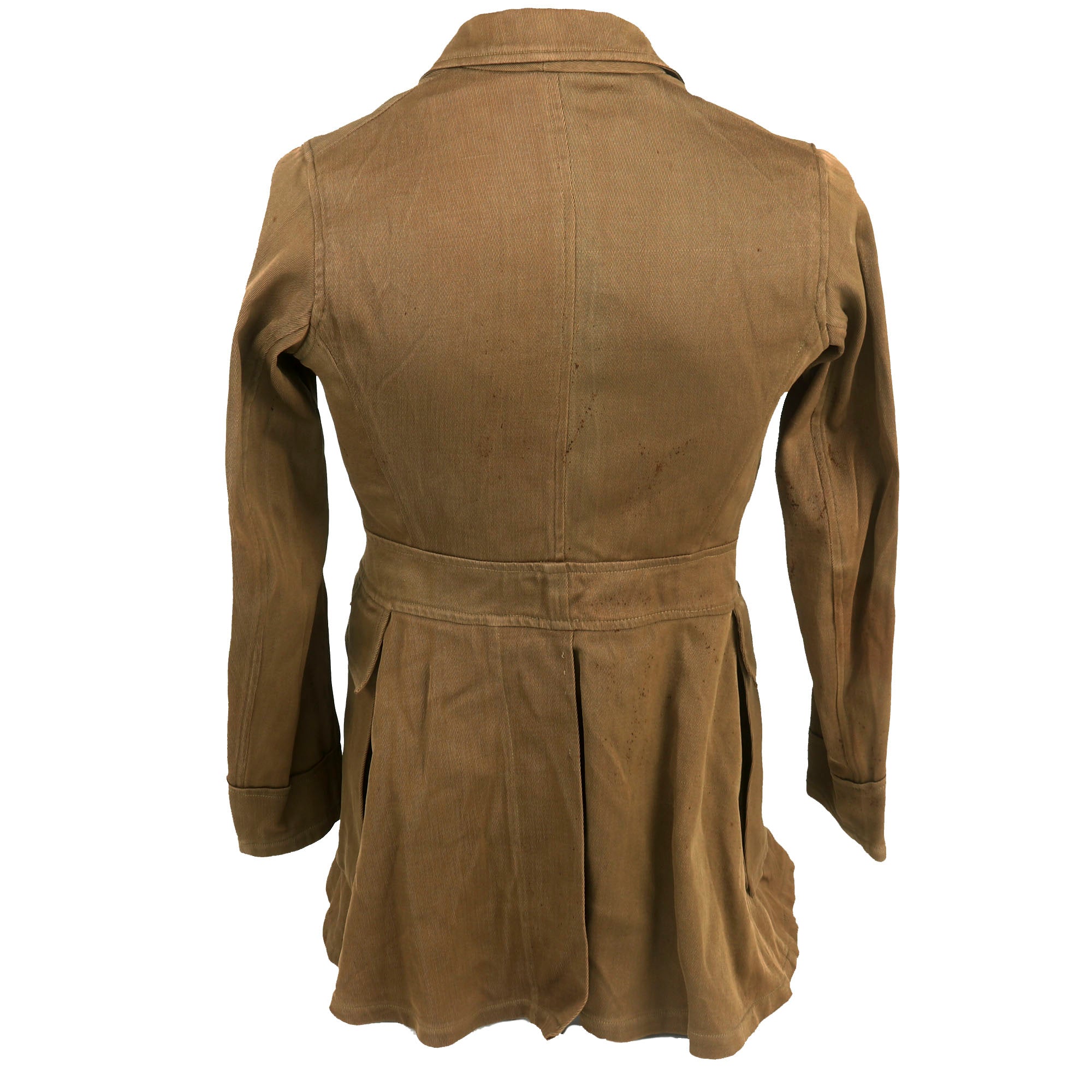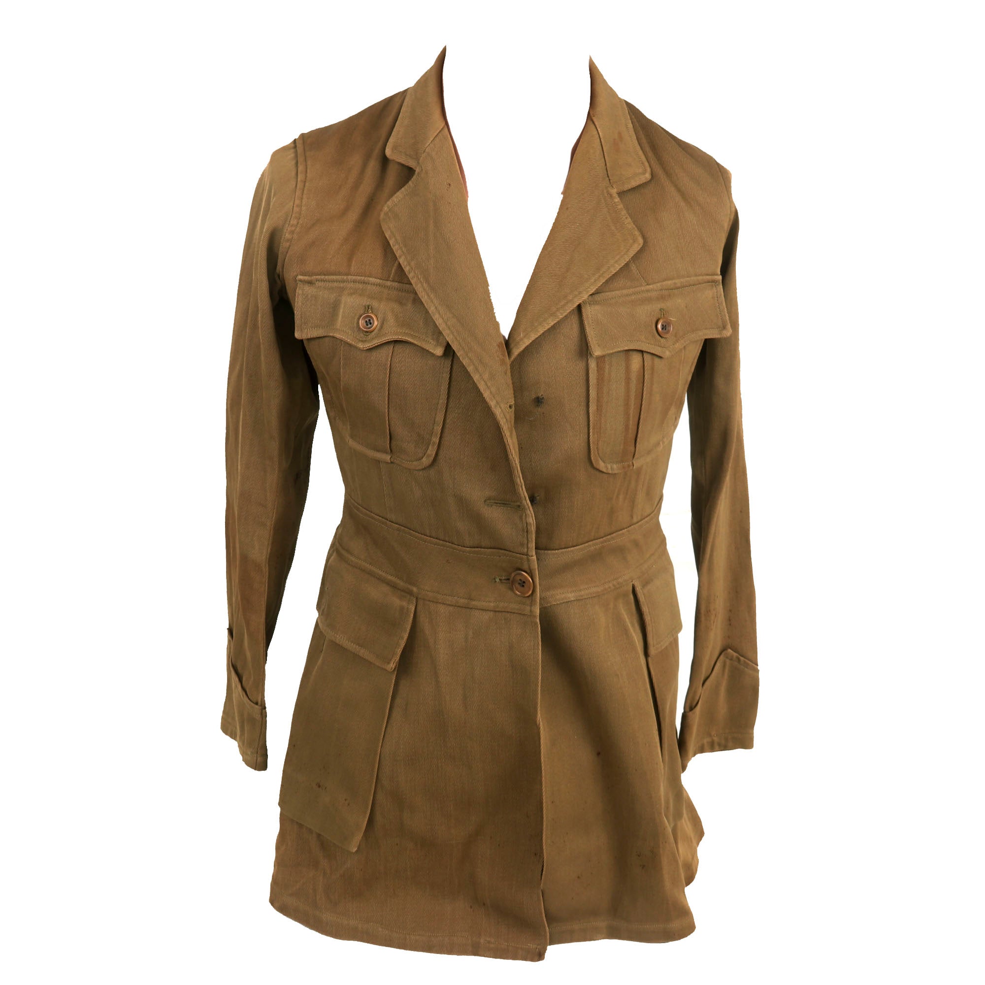This is a one-of-a-kind set of women’s worker uniforms for a very small organization of women whose tenure within the factories only lasted a single month. You will almost certainly never see another set like this.