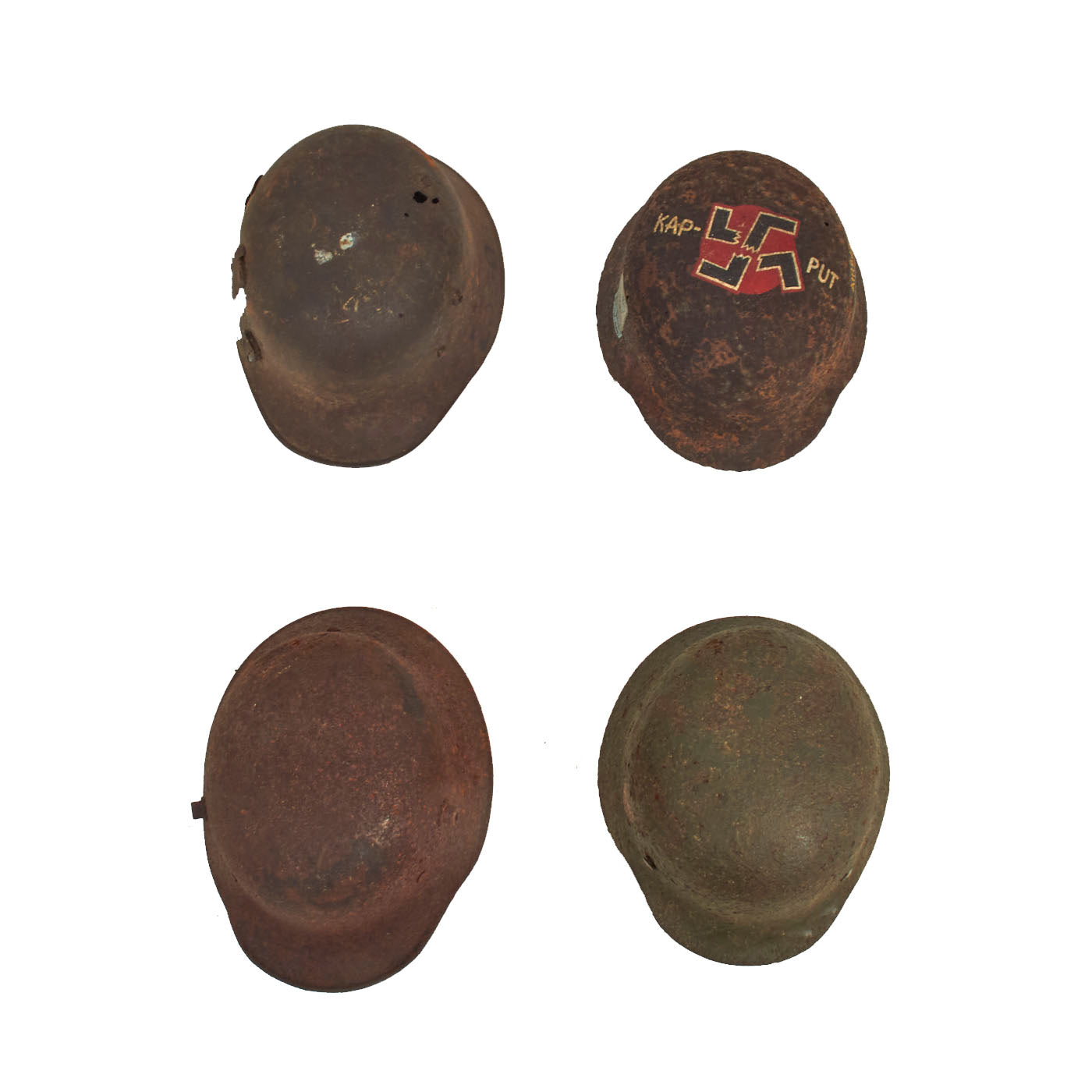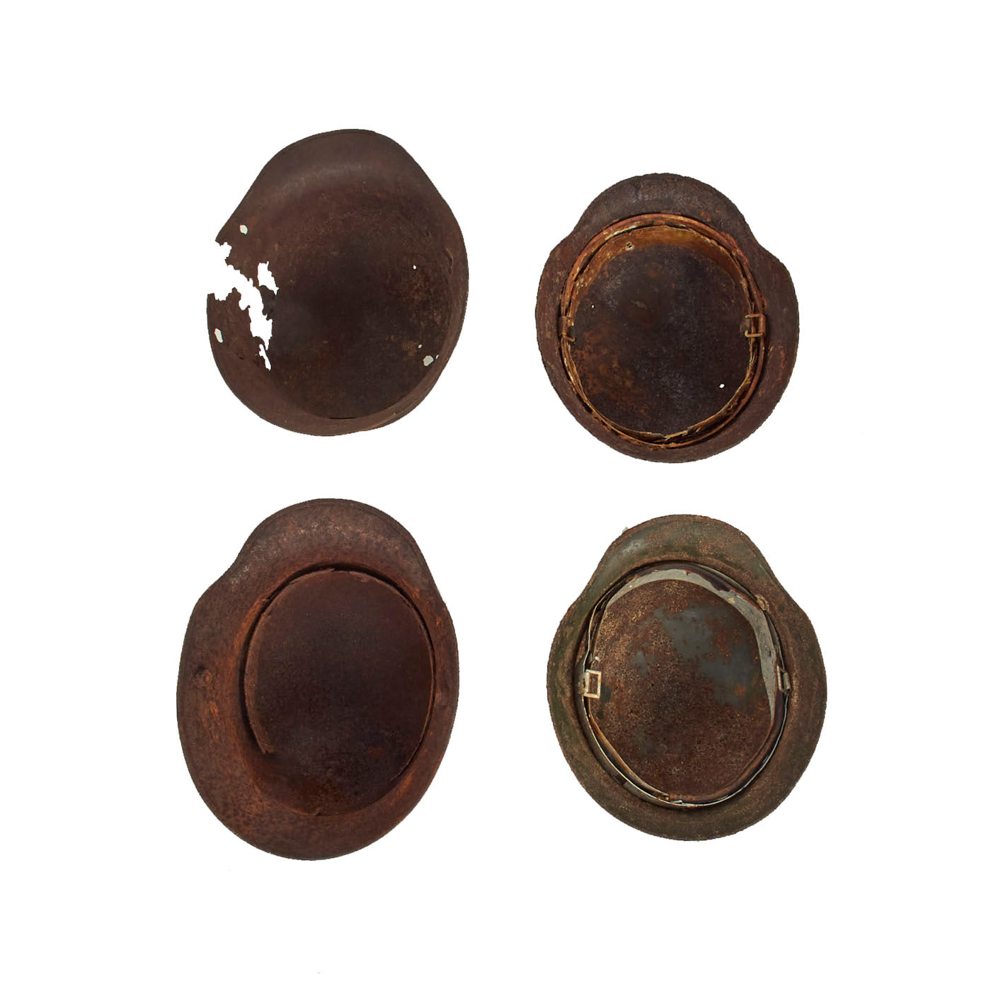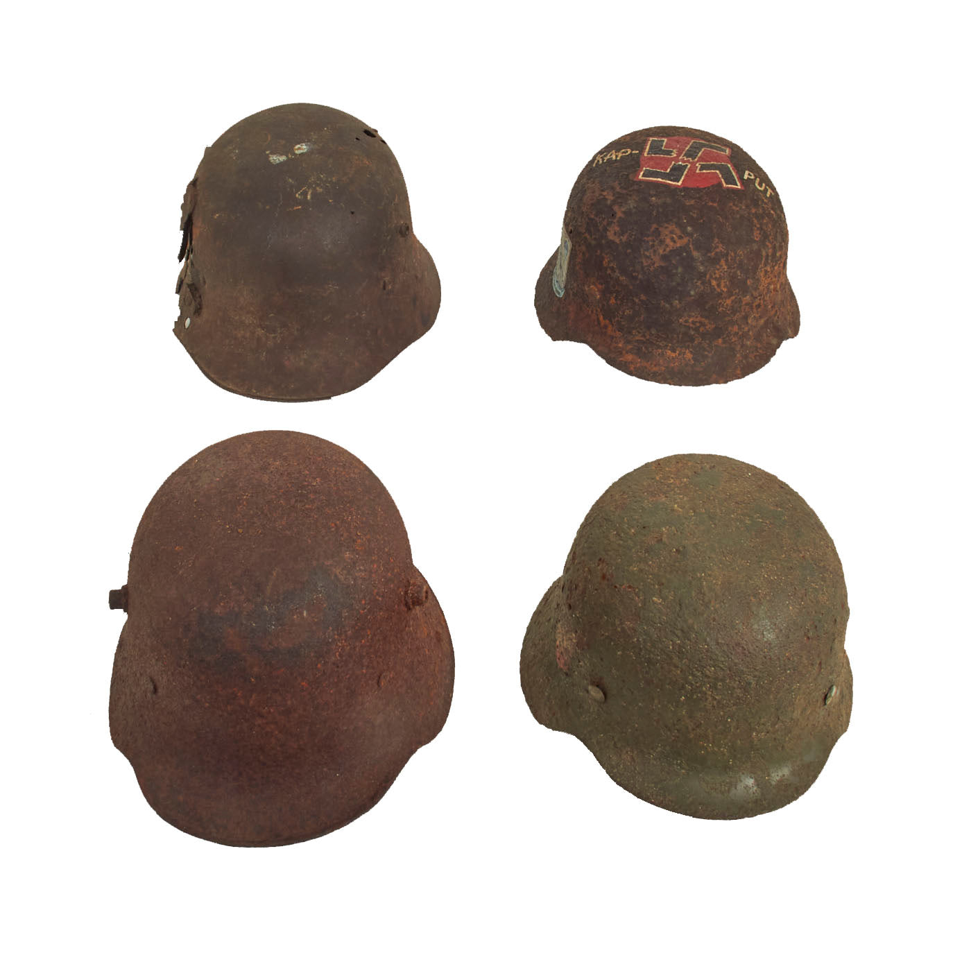 Original Items: Only One Lot of 4 Available. Military archaeology, the research for battlefield relics dating to World War 1 and World War 2 is a widespread practice in many areas across the world. In Europe, the fierce battles fought on the Eastern Front during WW2, produced millions of dead soldiers, many of whom lay where they fell. Groups of metal detectors are searching the now serene areas and are locating many items, ranging from guns, ammunition, parts of vehicles, aircraft, bunkers, to human remains of soldiers who were killed during those battles, along with their personal belongings.