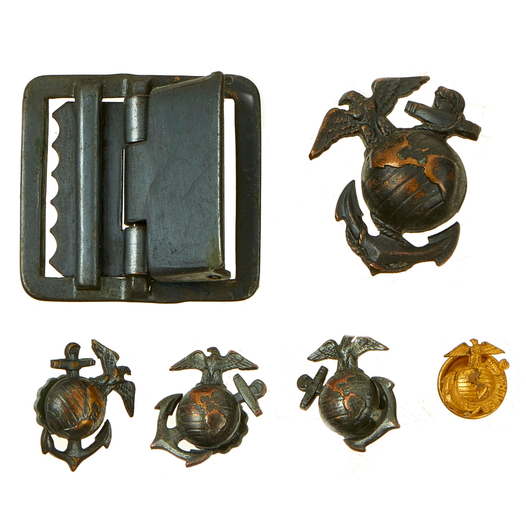 - - USMC EGA Insignias; Cap size and three collar size insignias, lapel pin