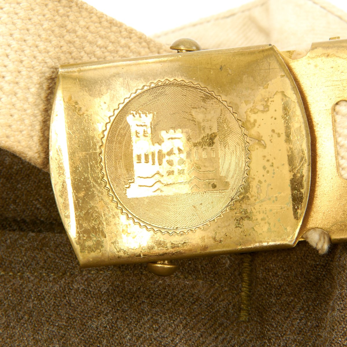 Original Items: One-of-a-kind set. The 4th Engineer Special Brigade was activated on 1 February 1943, at Fort Devens, Massachusetts, as the 4th Engineer Amphibian Brigade. In 1943, the brigade was redesignated an Engineer Special Brigade and transitioned to Camp Stoneman, California. The 4th ESB arrived in New Guinea on 18 May 1944, and participated in the assaults on Morotai Island, Netherland East Indies (15 September 1944) and Lingayen Gulf, Luzon (9 January 1945). The brigade was inactivated in Japan on 15 April 1946. The commanding general of the 4th ESB for its lifetime was Brigadier General Henry Hutchings, Jr.