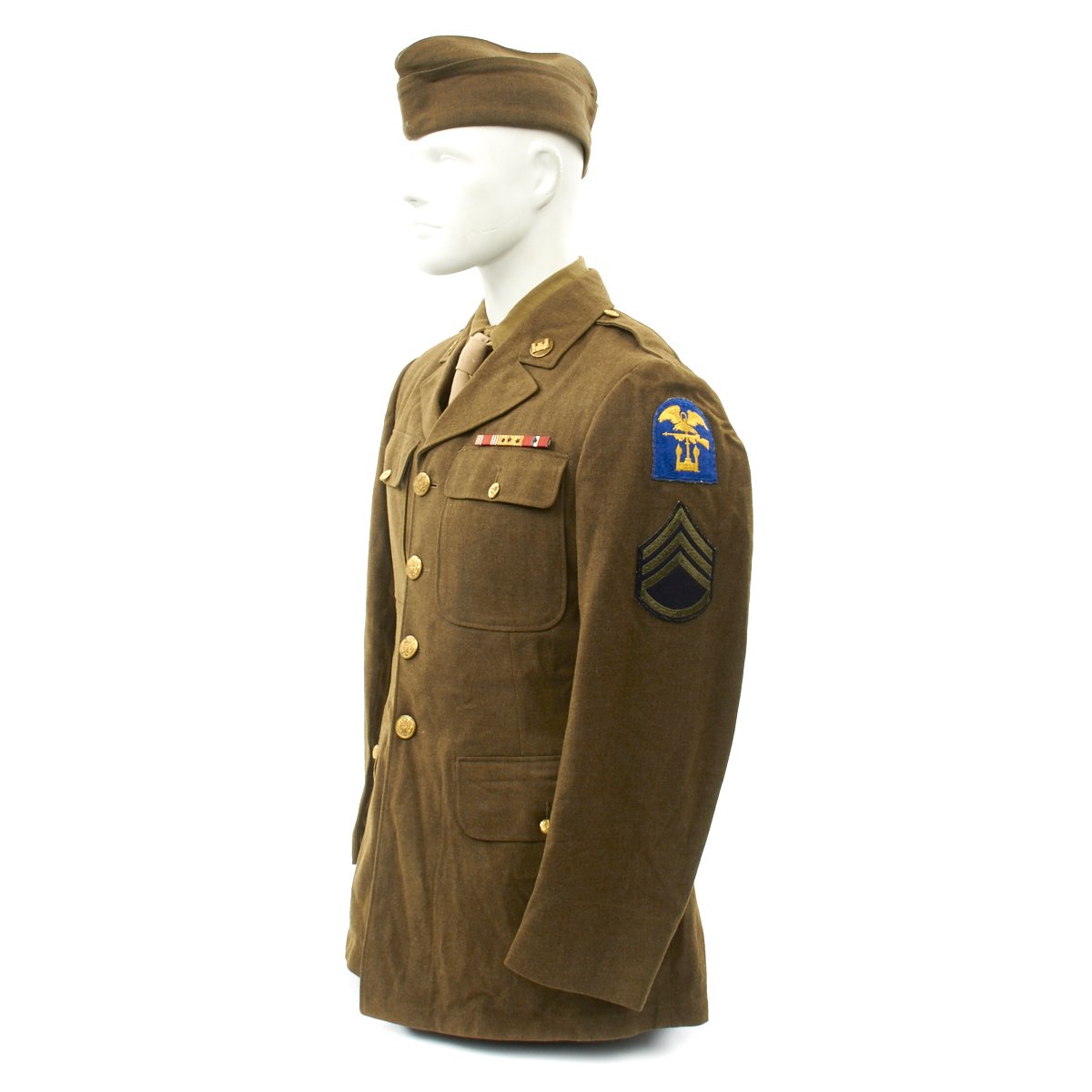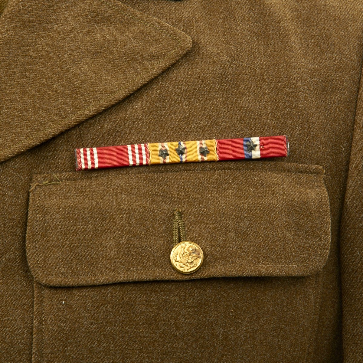- Class A four pocket tunic in sizer 40R offered in excellent condition. Features medal ribbon bar with the following decorations: Good Conduct, Asiatic–Pacific Campaign with three campaign stars, Philippine Liberation Medal with bronze star. Left should bears an Engineer Special Brigade insignia patch, right shoulder has a USARPAC Insignia patch ( The insignia of the U.S. Army Pacific ), engineer collar tab, Sergeant chevrons on each sleeve.