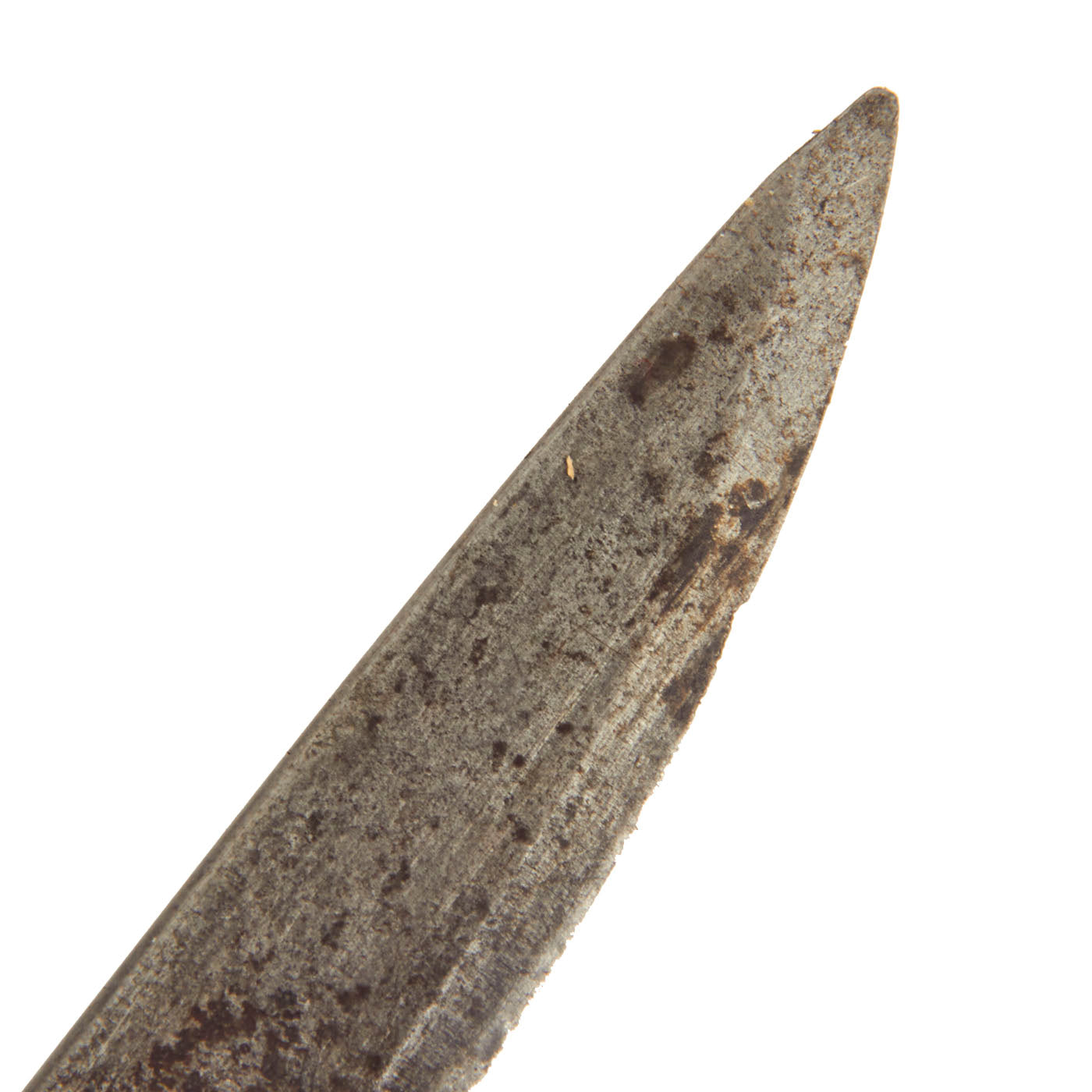 In its original form, the P-1907 had a hooked guard (quillon), which was then removed from the pattern in early WWI due to the questionable use and increased production time. Unlike the 1903, the 1907 had a single edged blade that was less wide, but made of thicker stock.