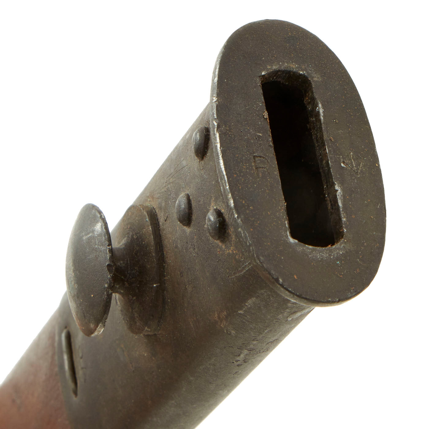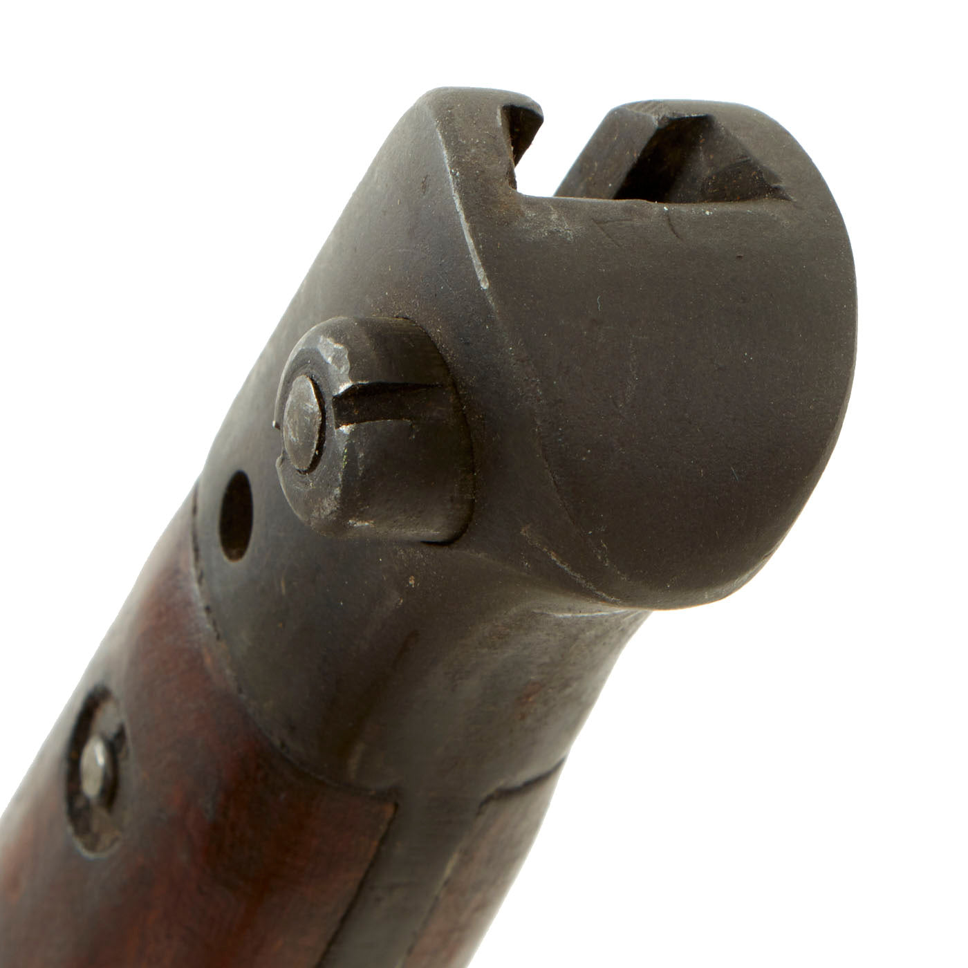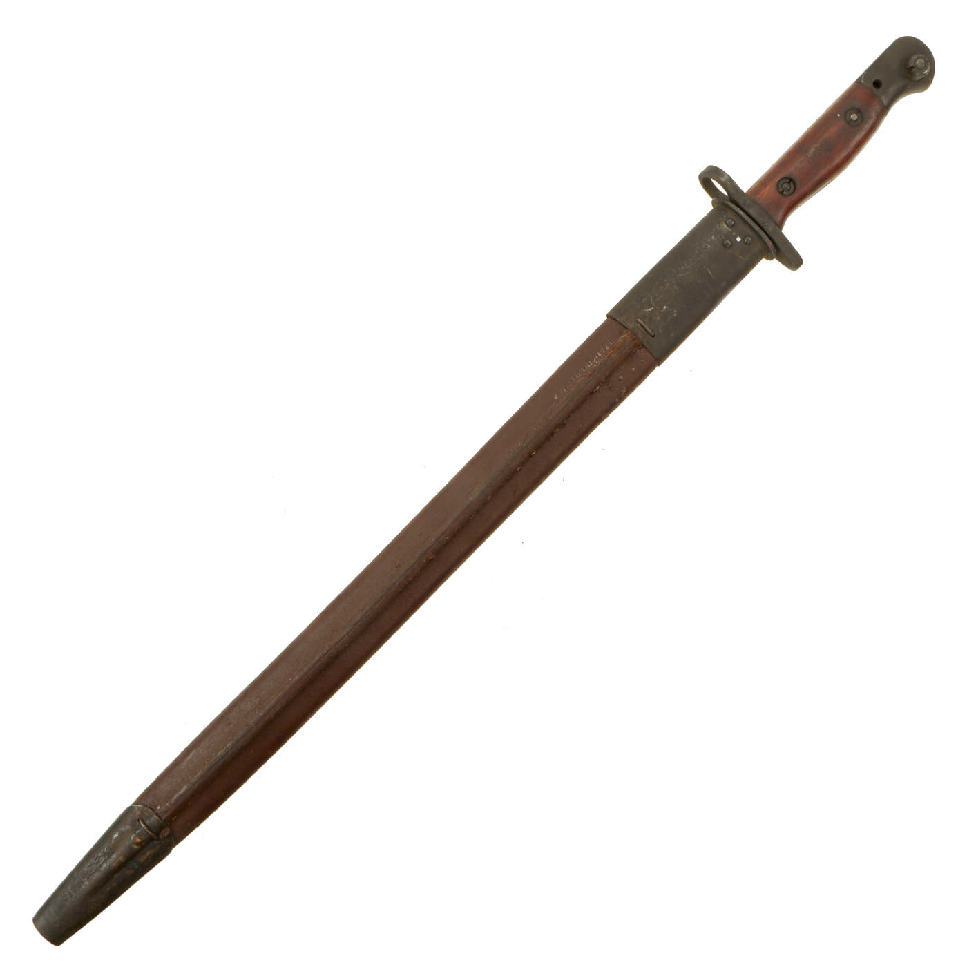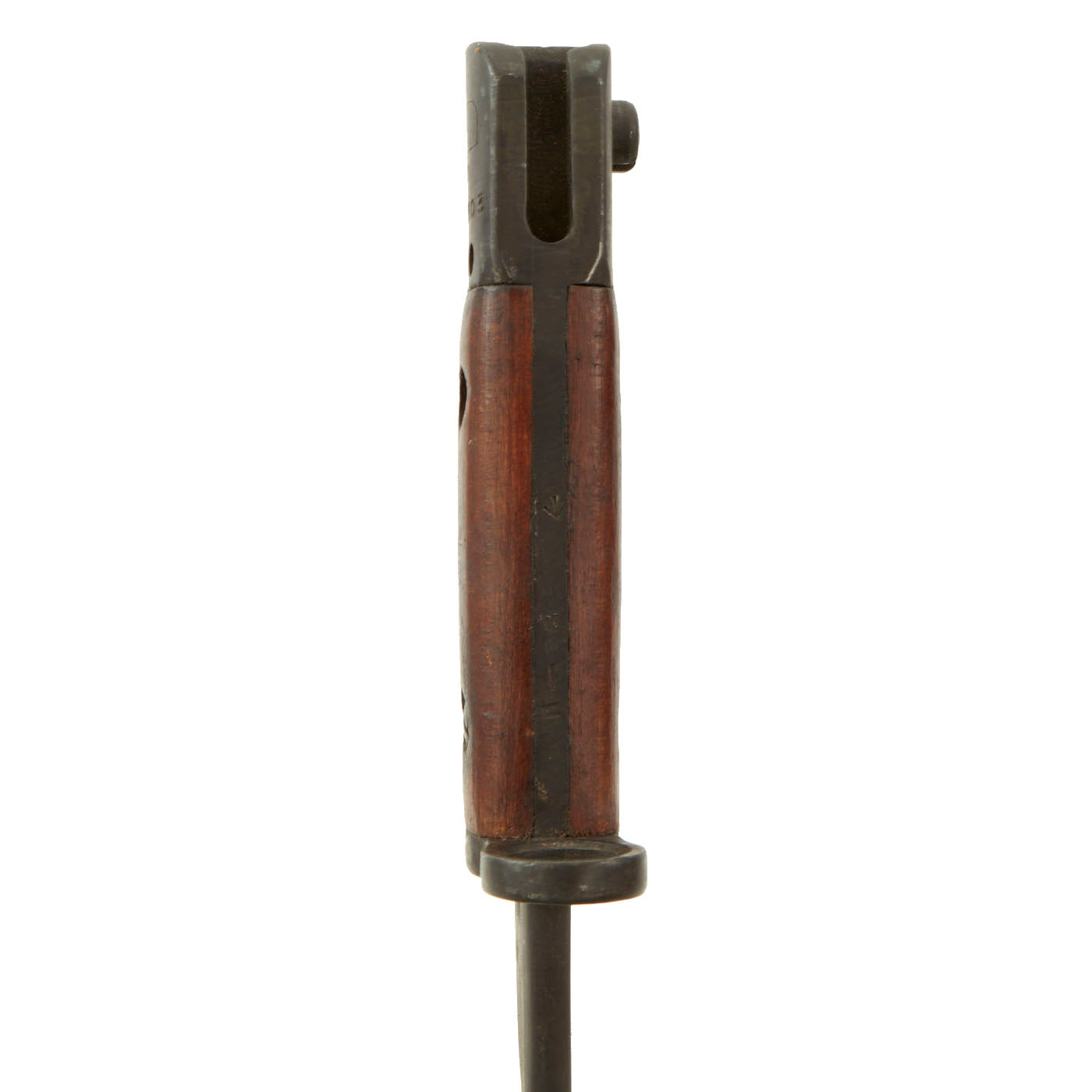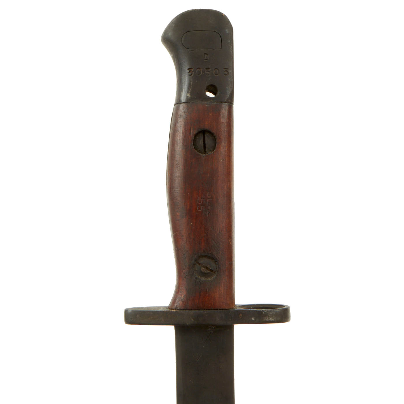 Original Item: Only One Available. Recently purchased at a military auction, this is an interesting Australian manufactured P-1907 Bayonet for the No.1 MkIII Enfield rifle, often called the SHT.LE, SMLE, S.M.L.E., "Smelly" etc. This example was produced in Australia during WWII, with an original blade length of 17 inches. The Japanese forces in the Pacific still used longer bayonets, so the British, like the U.S. forces, kept the longer bayonets.
