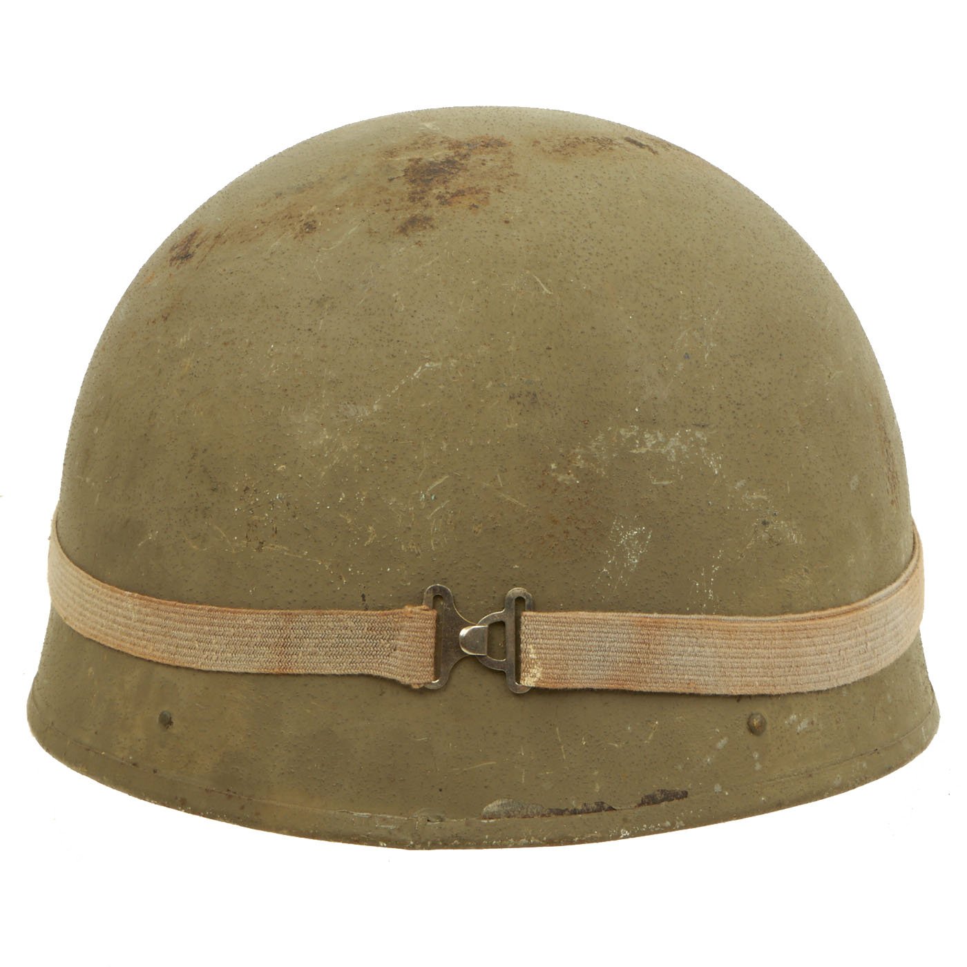 The MkII paratrooper helmet shell was also used for dispatch riders during and after World War II. It was introduced in 1942 and features a front pad and leader neck flap that forms a double chinstrap. This is a great example of the classic WWII British Dispatch Rider helmet that will make a great addition to any collection.