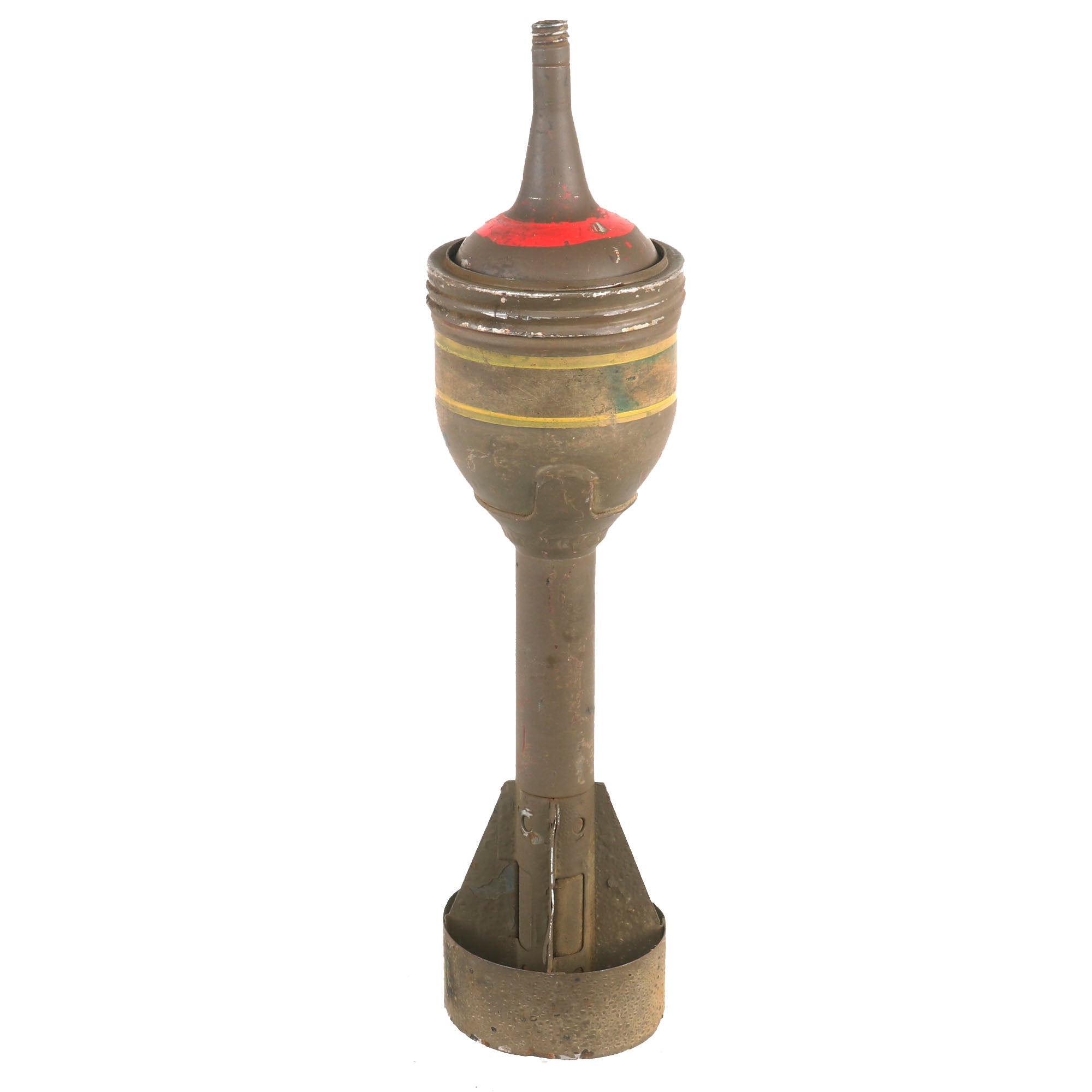 Original Item. Only One Available. This is a very nice Inert British WWII PIAT Anti-Tank Bomb Launcher HEAT (high explosive anti-tank) "Bomb" round. This example retains its original factory paint and stamps, with a date of 6/44, for June 1944. This example is missing the fuze cap but still displays very well without. Like all deactivated ordnance, this PIAT Round is Not Available for Export.