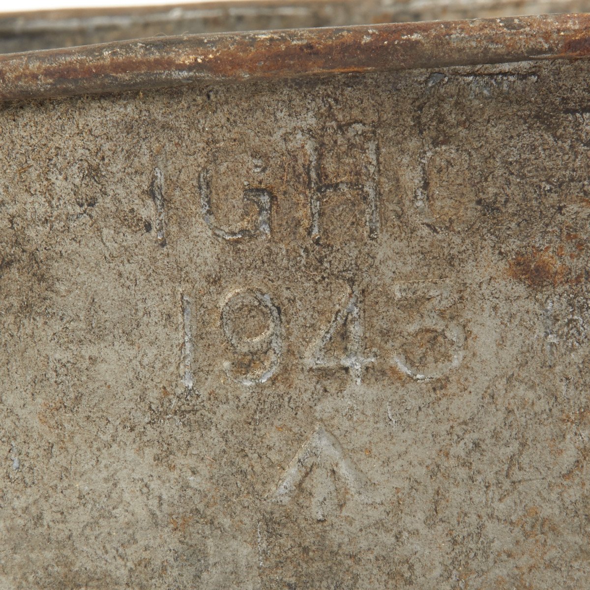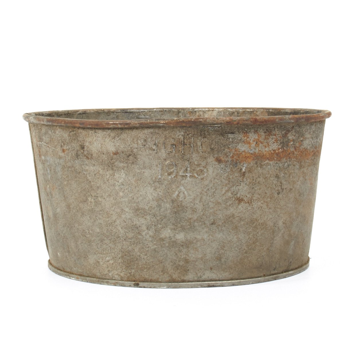 Original Item: Who could have imagined this height of decadence? Official Army issue galvanized steel foot baths. Full military marking with broad arrow and WWII dated.