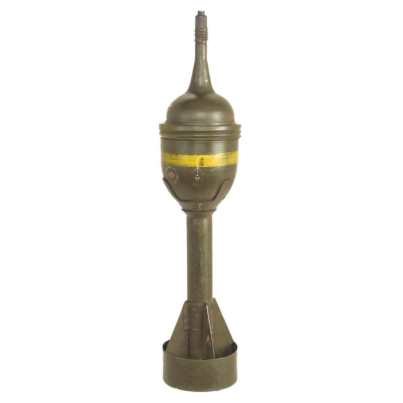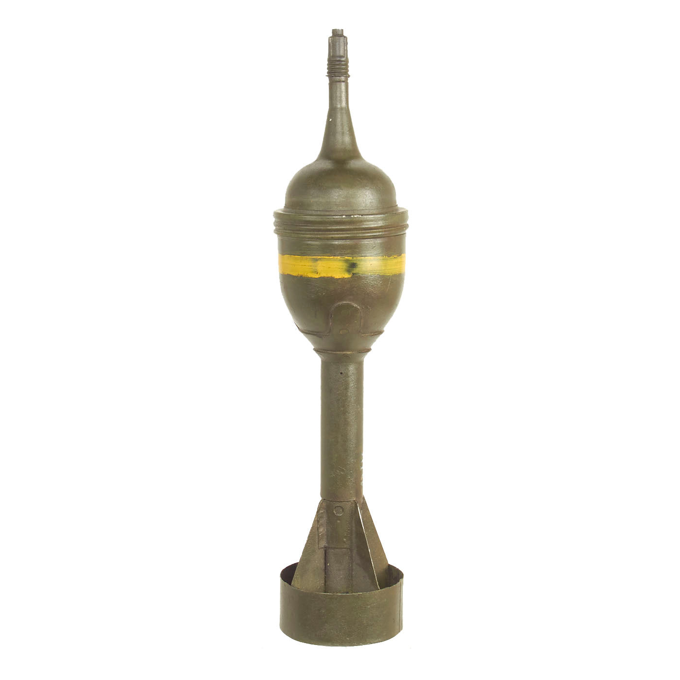 Original Item: Only one available. Totally inert and demilitarized according to BATF guidelines with hollow body and inert fuse. This is a very nice British WWII PIAT Anti-Tank Bomb Launcher HEAT (high explosive anti-tank) "Bomb" round. It is painted with the correct British ordnance color as used on the launcher itself.