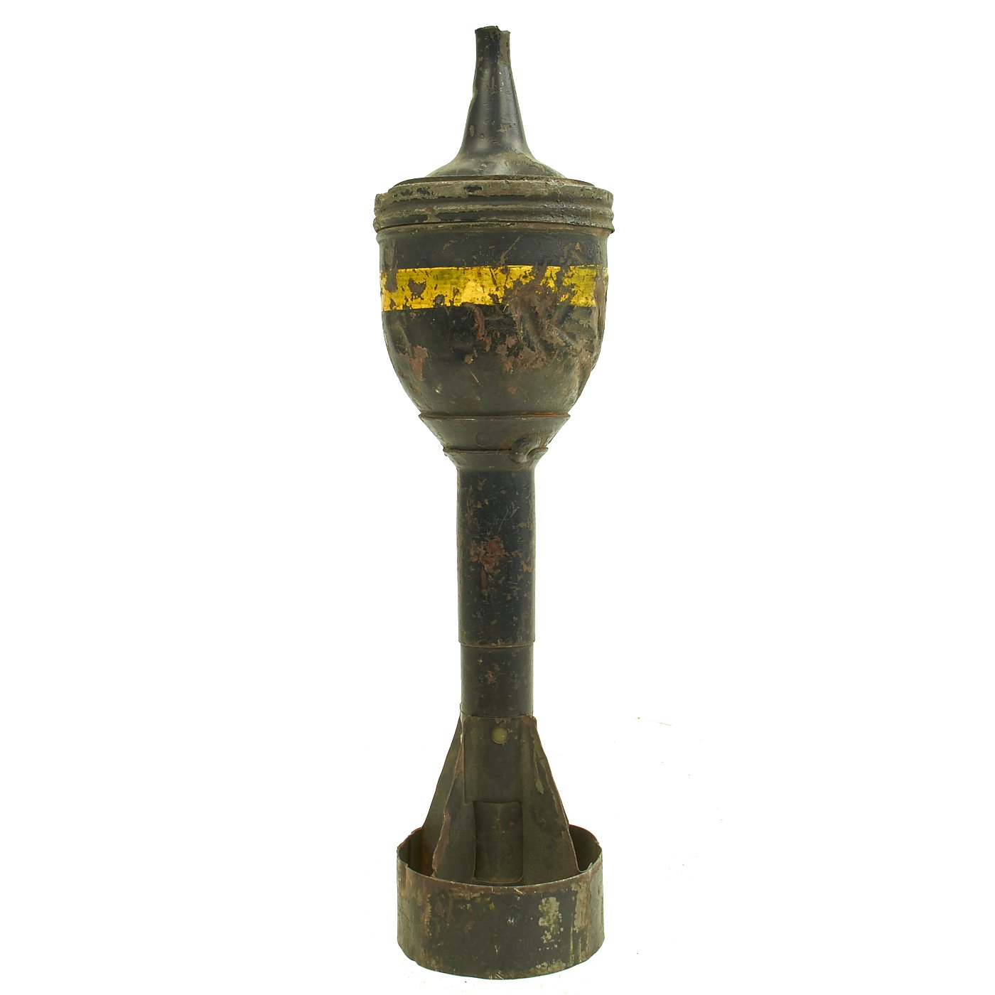 Original Item: Only one available. Totally inert and demilitarized according to BATF guidelines with hollow body and inert fuse. This is a very nice British WWII PIAT Anti-Tank Bomb Launcher "Bomb, Practice Inert/AT" practice round. As is correct, it is painted black with a yellow ring. These were the same size and weight as a live round, with no warhead, but has a live propellant cartridge. They could be fired once from a standard PIAT, and were not reusable.