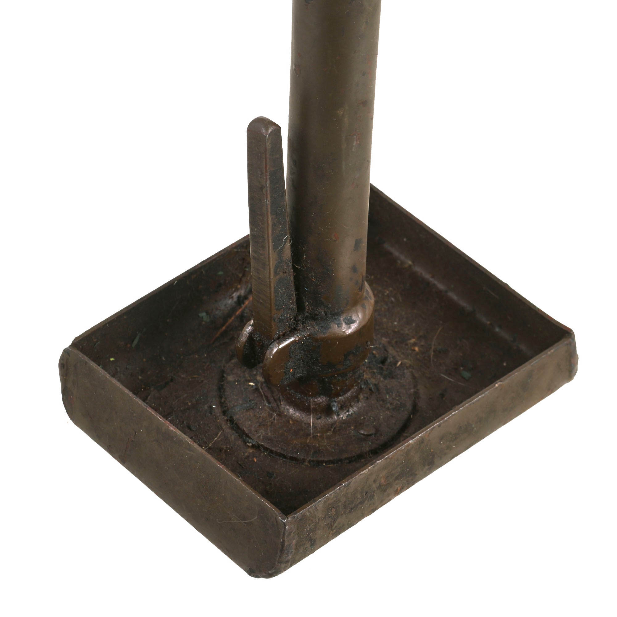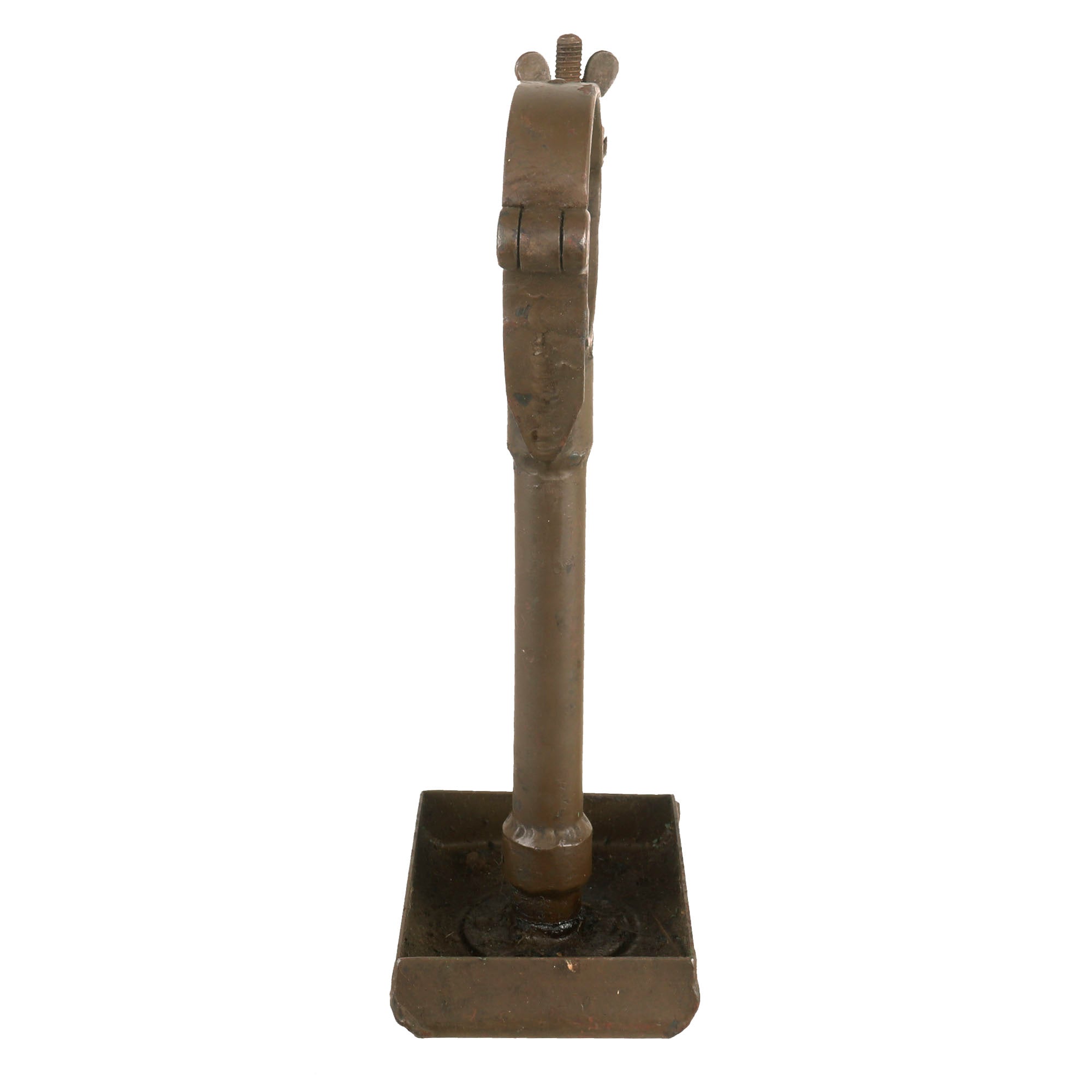 To help with support of the weapon and stabilize the aim, it was issued with a detachable monopod, which is what we have for sale here. The height is adjustable, to accommodate both the varying heights of the soldiers, as well as various types of terrain. Condition of the monopod is very good, with almost of the original olive brown wartime paint intact. These are often painted an awful "Christmas tree green" color post war, but not this example!