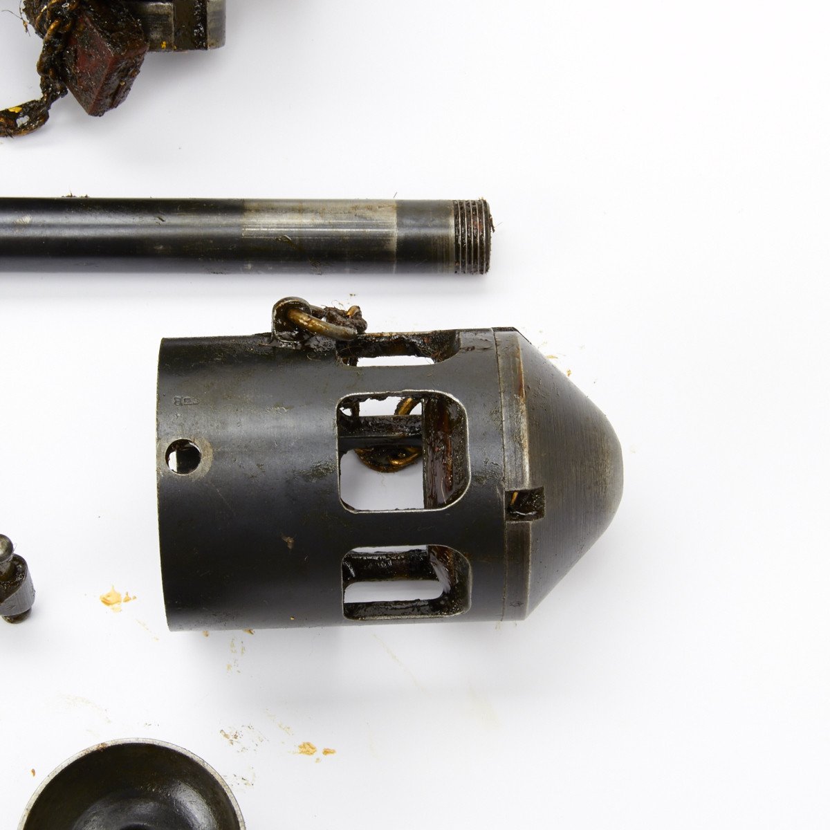 Please be aware that sets will be packed in a thick layer of of original cosmoline (grease). The photographed example was cleaned to show details, we do not clean parts sets before shipment but do inspect them to make sure they are complete and no parts are defective.