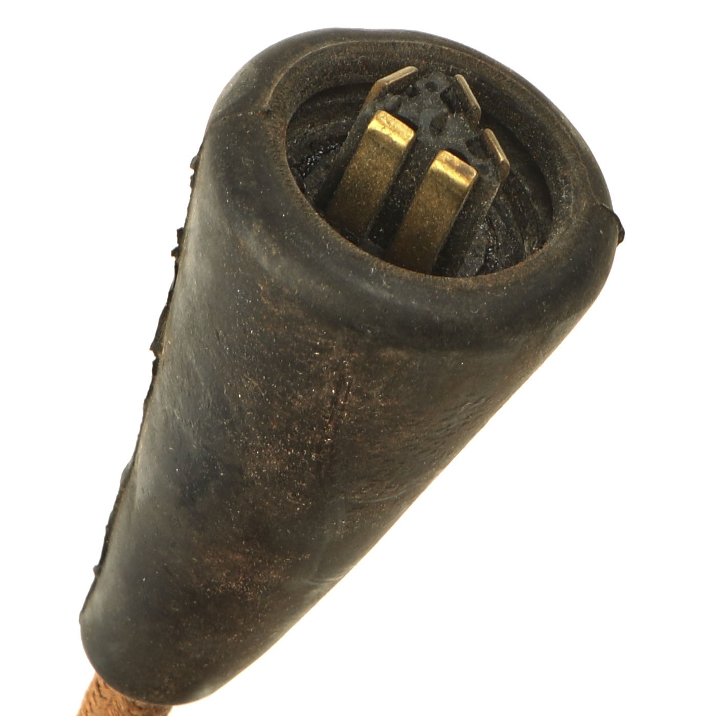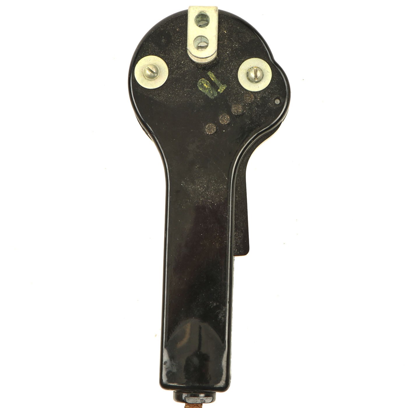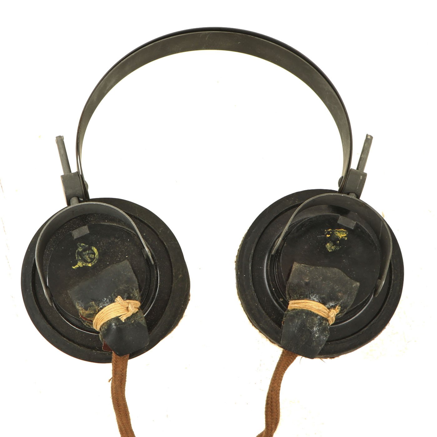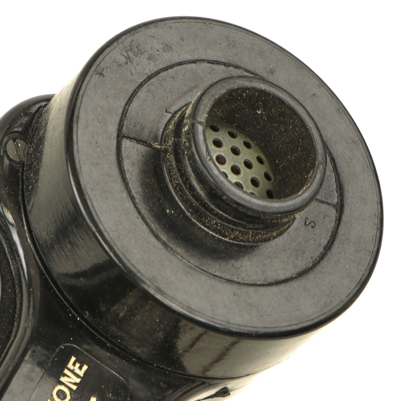 The headphones are in good shape, with intact napping on the pads, and secure wiring. They are attached to a MICROPHONE HAND No. 7, which is also in good shape. It still has the original rubber mouthpiece cone, which has been left off to avoid it stretching and cracking.