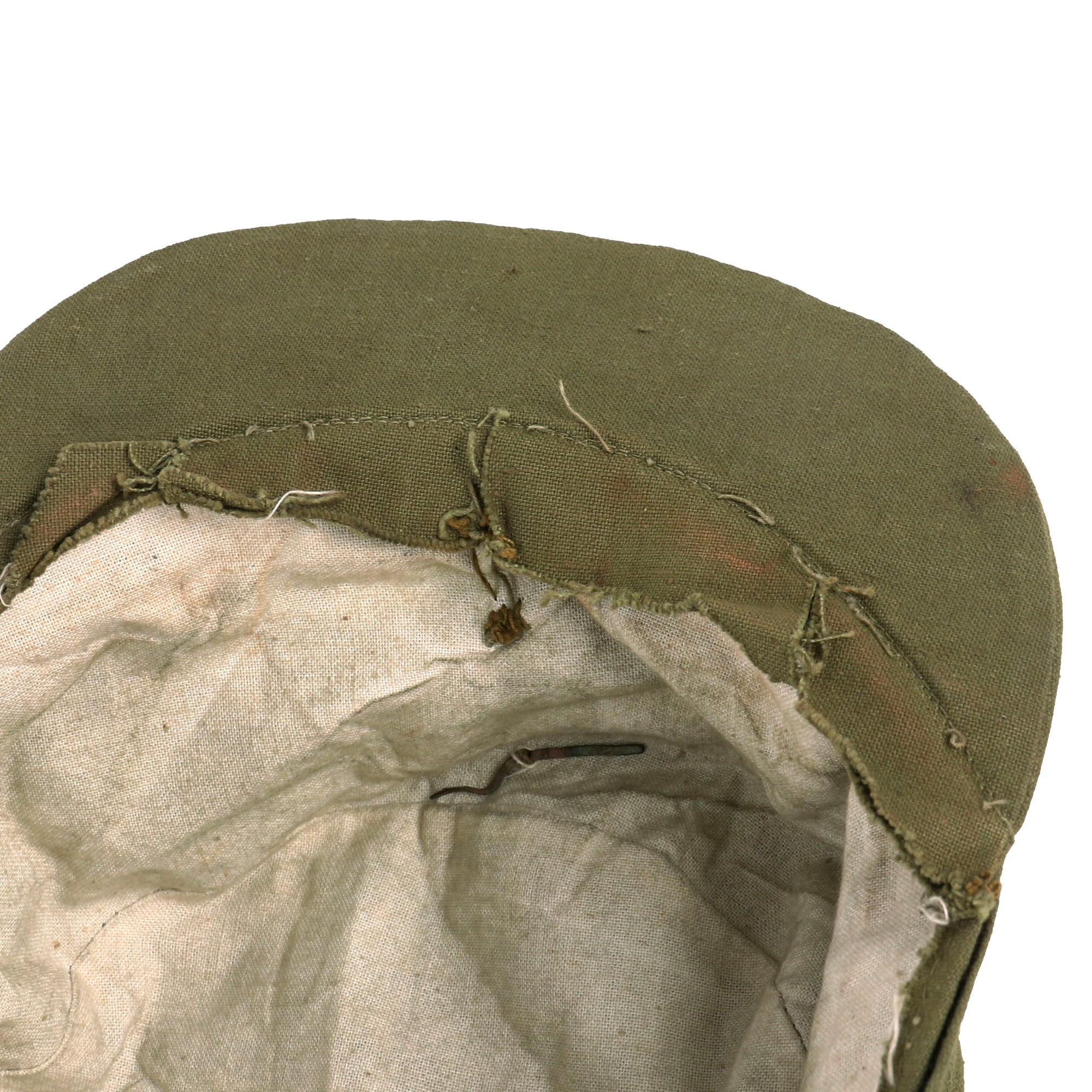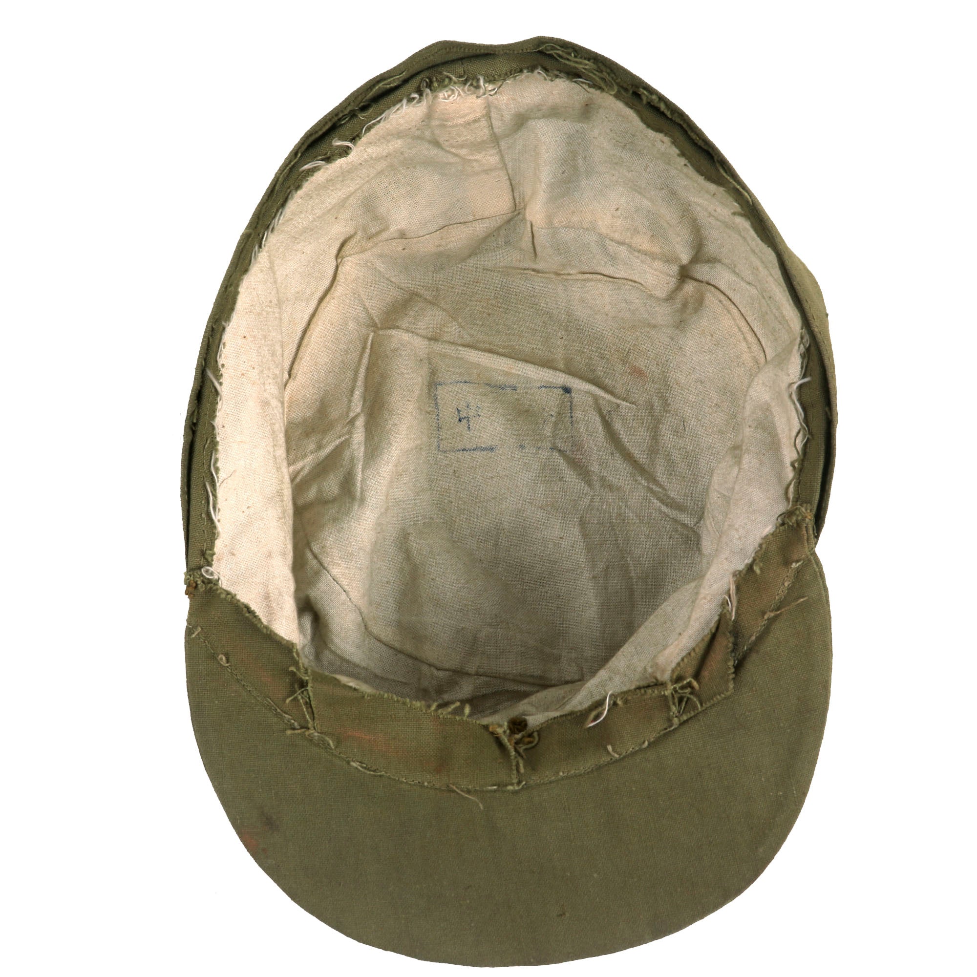 The cap is in very good condition, with the expected wear and staining from service. There is a very faint marking on the interior in Chinese. Size is relatively small, probably around a 56cm.