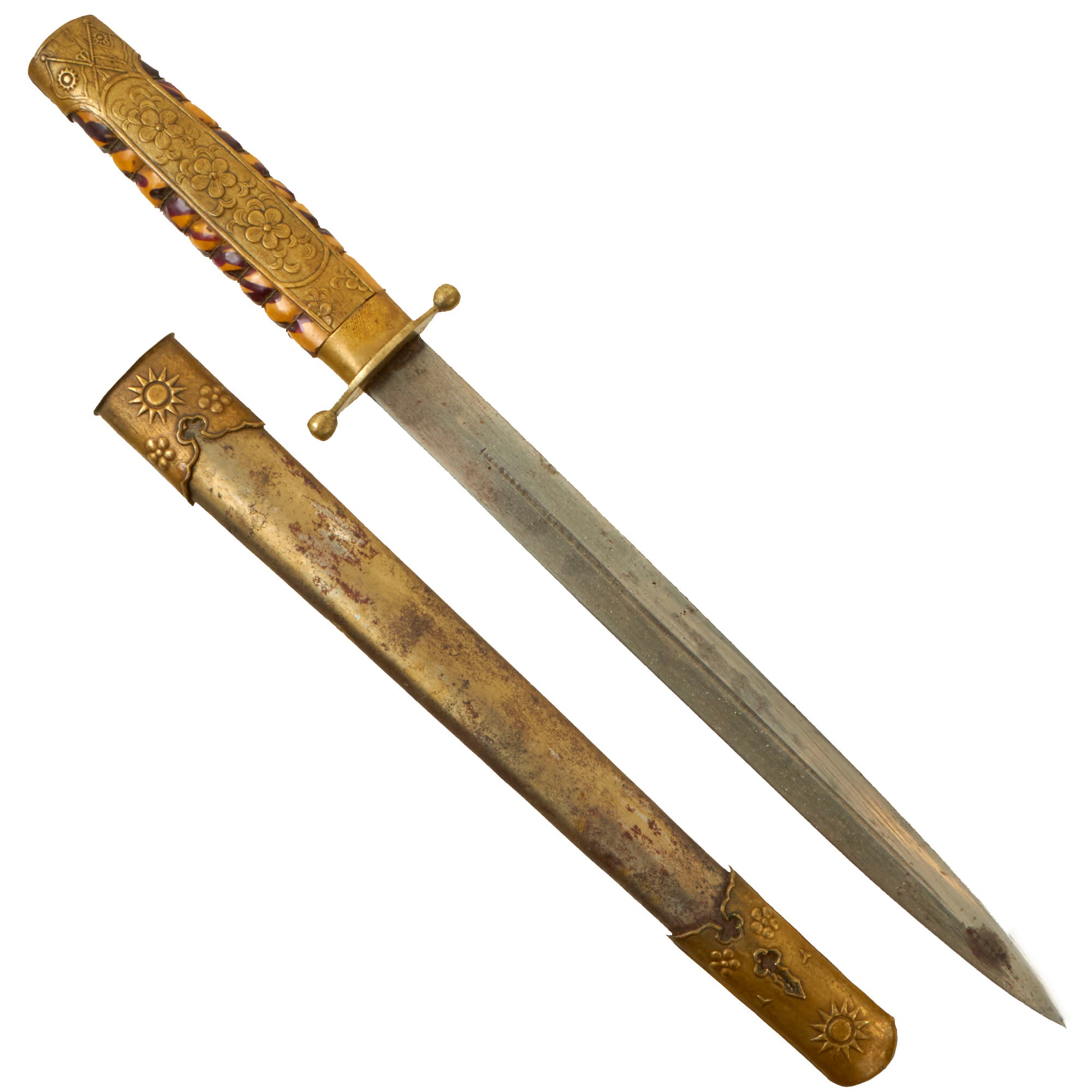 Original Item: Only One Available. This is a rare example of the type of dress dagger that was approved for wear by officers of the Chinese National Revolutionary Army (國民革命軍) at the time of the Sino-Japanese war of 1937-1945. Often abbreviated as the NRA, the group was the military arm of the Kuomintang (KMT, or the Chinese Nationalist Party) from 1925 until 1947.