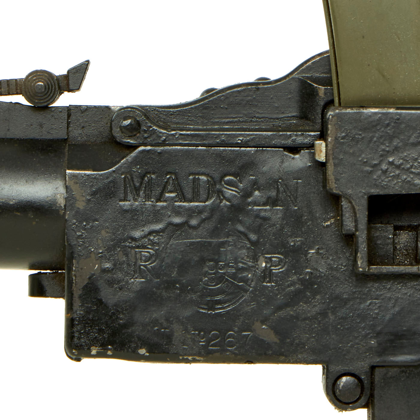 Original Item: Only One Available. Recently purchased from a private collection! This is a very nice example of a Danish Madsen Light Machine gun, produced by IMA years ago, and just purchased back. As with all our Madsens, BATF compliant non-firing Madsen Display LMG assembled onto re-welded non operational shortened receiver. These are constructed of 95% original parts (a couple pins and minor parts maybe post war manufactured, manufactured in Denmark and extensively used by Germany during WWII after the invasion of Scandinavia.)