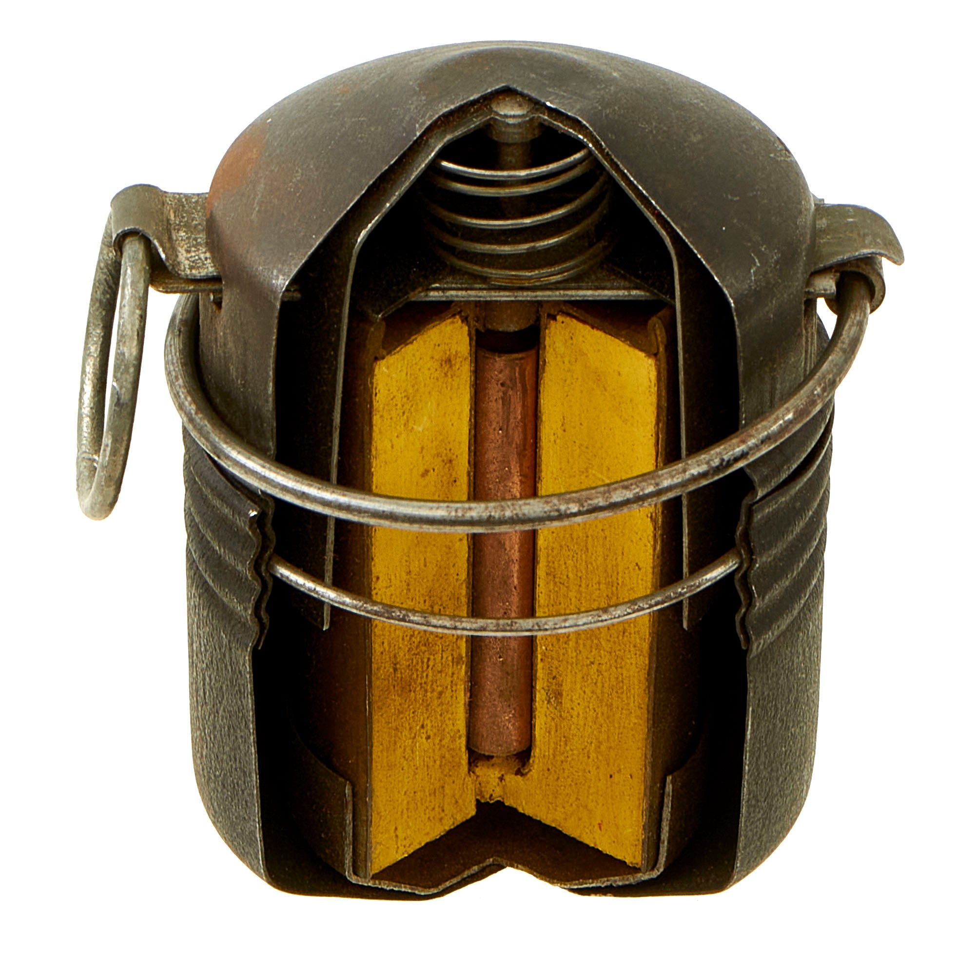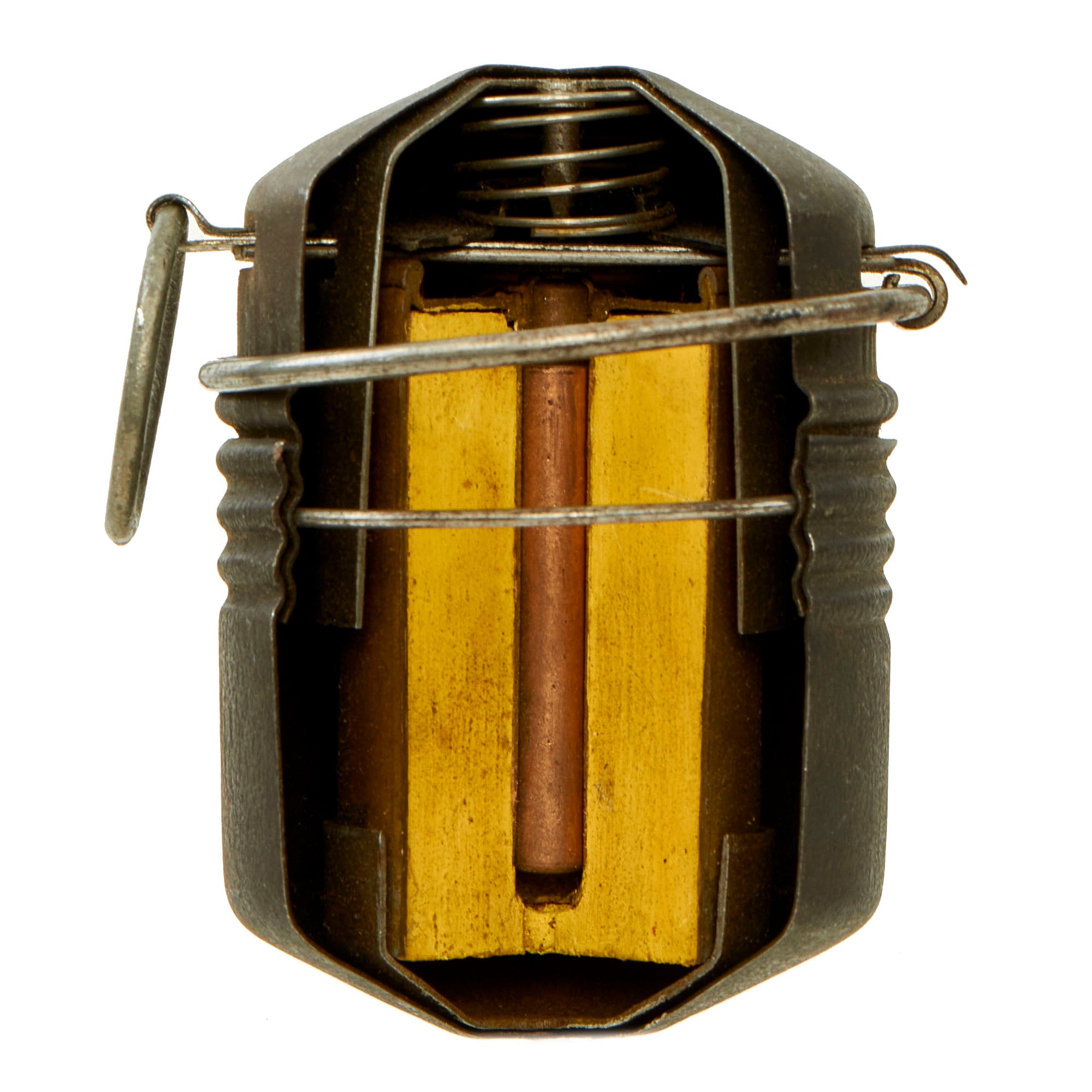 Original Item: Only One Available. This is a wonderful condition M35 style grenade cutaway. We have encountered numerous Italian grenades though not this type. While it does appear to be a “Red Devil” grenade, we believe this is a clone produced by another country. There are no markings present making this a rather interesting grenade to research.
