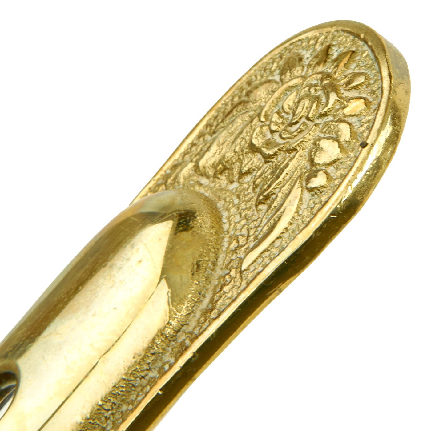Overall condition is very good, but it does show age, probably being around 70 years old. The nickel plating on the scabbard and blade is a bit worn, giving it a lovely patina of age.