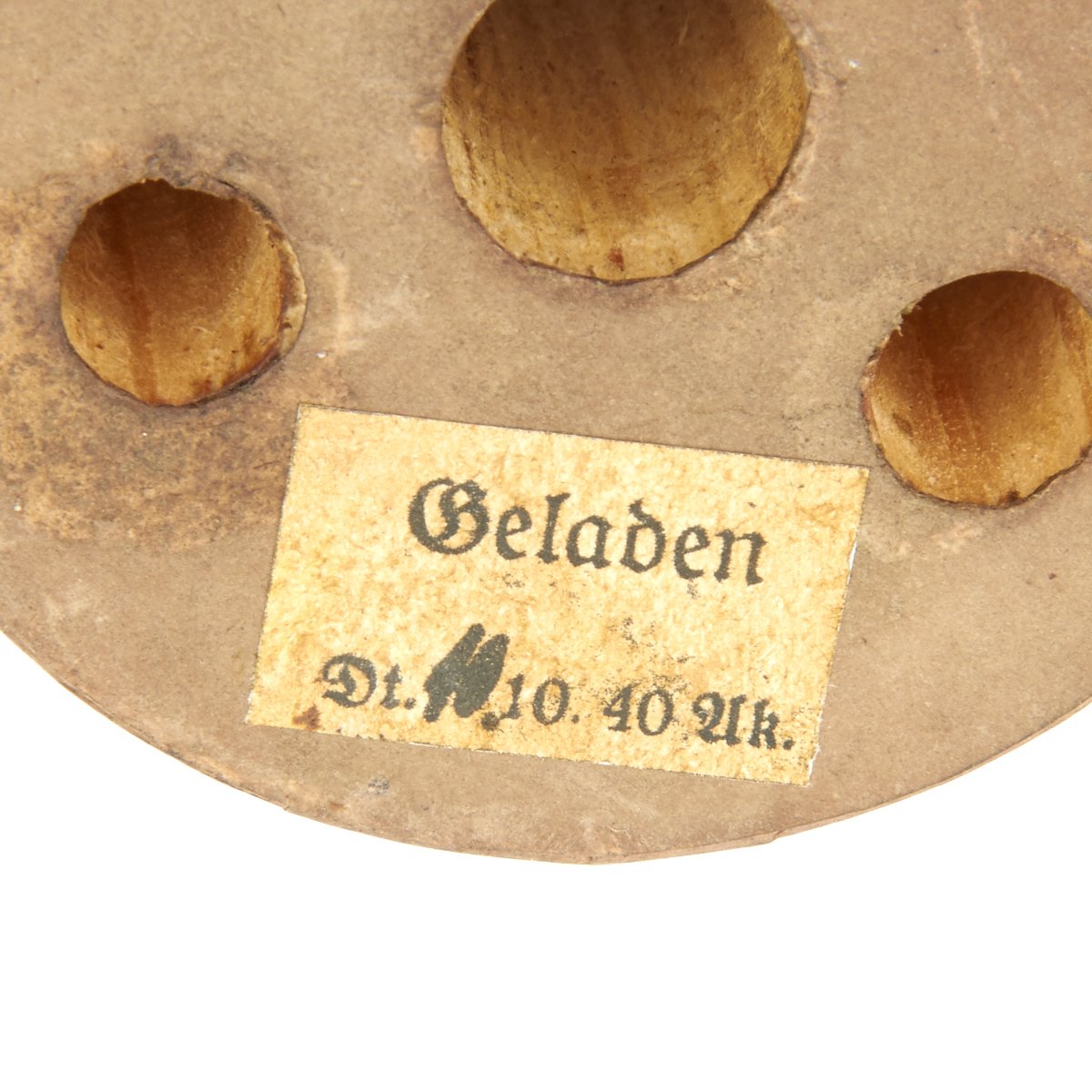 Original Item: Only One Available. Incredible totally inert original German WWII 1938 dated S-Mine with two tripwire activated fuses as well other accessories including the hard to find fuse elbow, as well as deactivated detonator tubes, and a replica fully-marked TNT charge (Geladen) constructed of wood with original paper label. Also, included are shrapnel (ball bearings) which are nearly identical to the shrapnel that would have been used during WWII. These give weight and authenticity to the mine. It bears original green paint with Waffenamt inspection logo and number stamped into the steel above the maker name and date:
