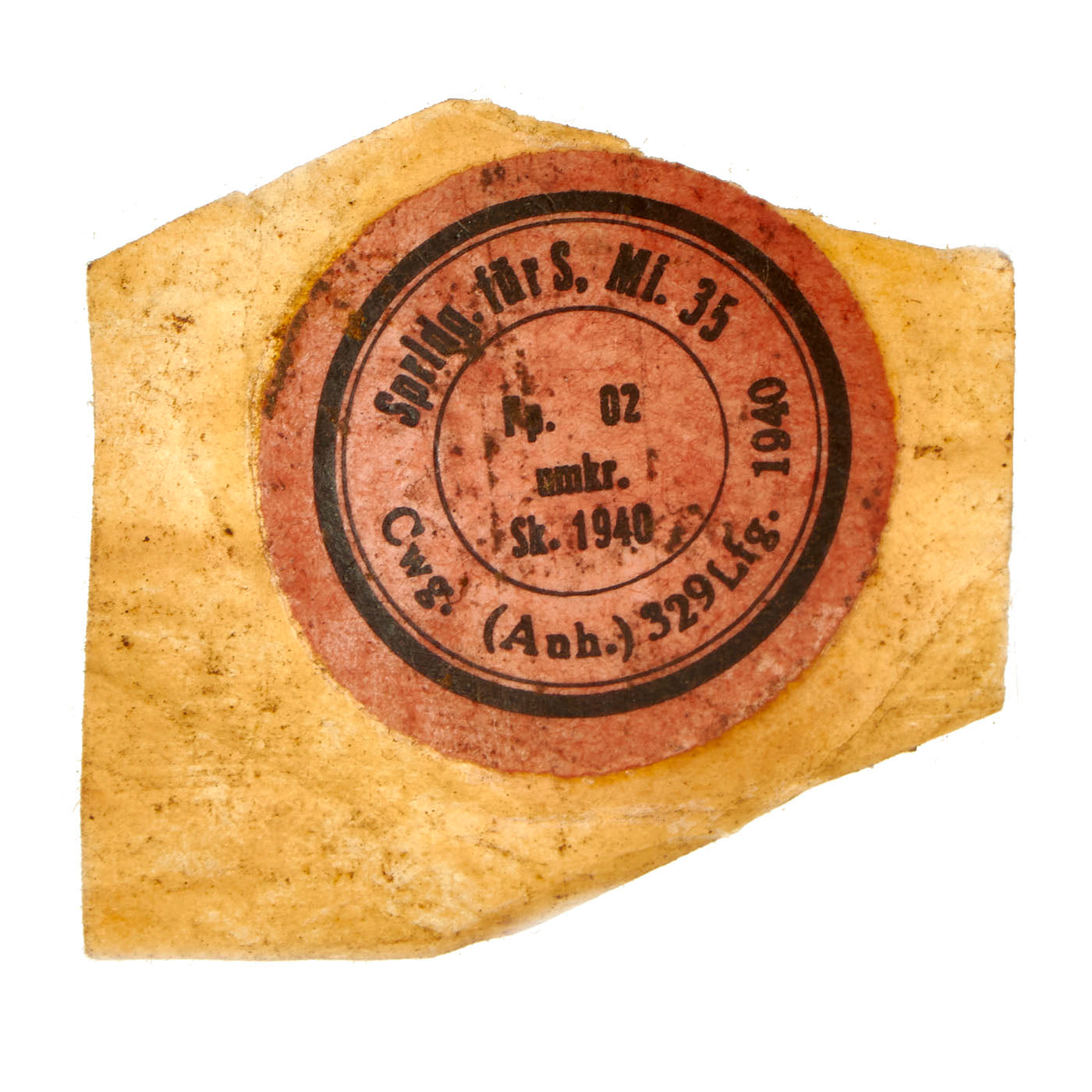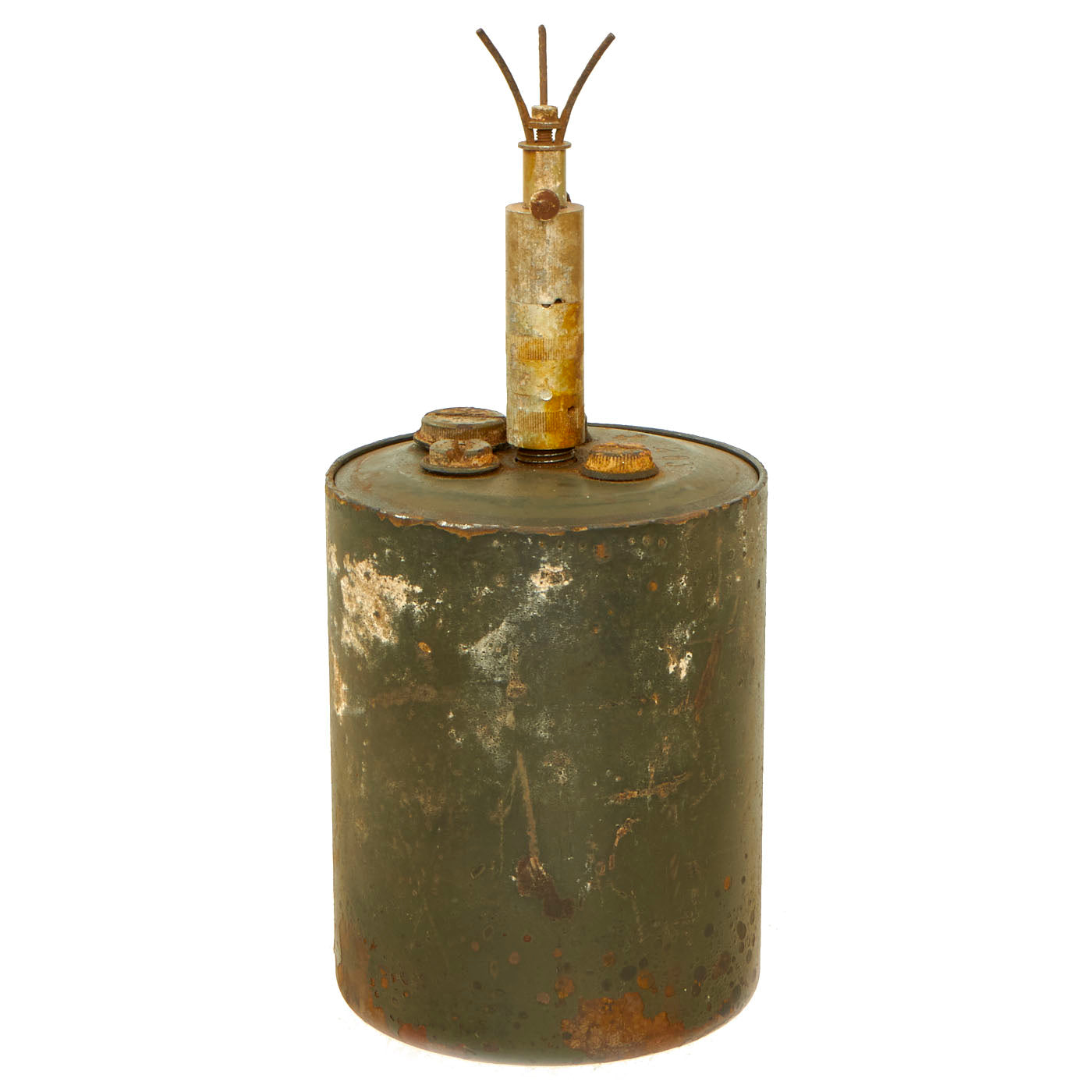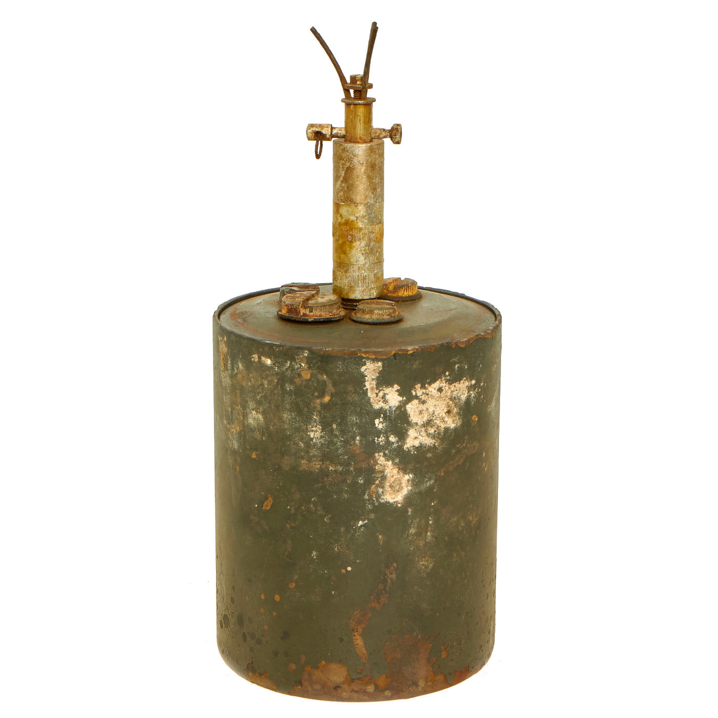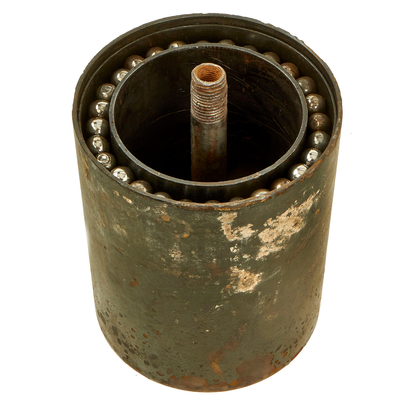 Original Item: Only One Available. Incredible totally inert original German WWII SMi.-35 S-Mine, with one pressure activated fuse that was designed to resemble blades of grass, as well as deactivated detonator tubes and the bakelite fuze end plug. Also, included are shrapnel (ball bearings) which are nearly identical to the shrapnel that would have been used during WWII. These give weight and authenticity to the mine.