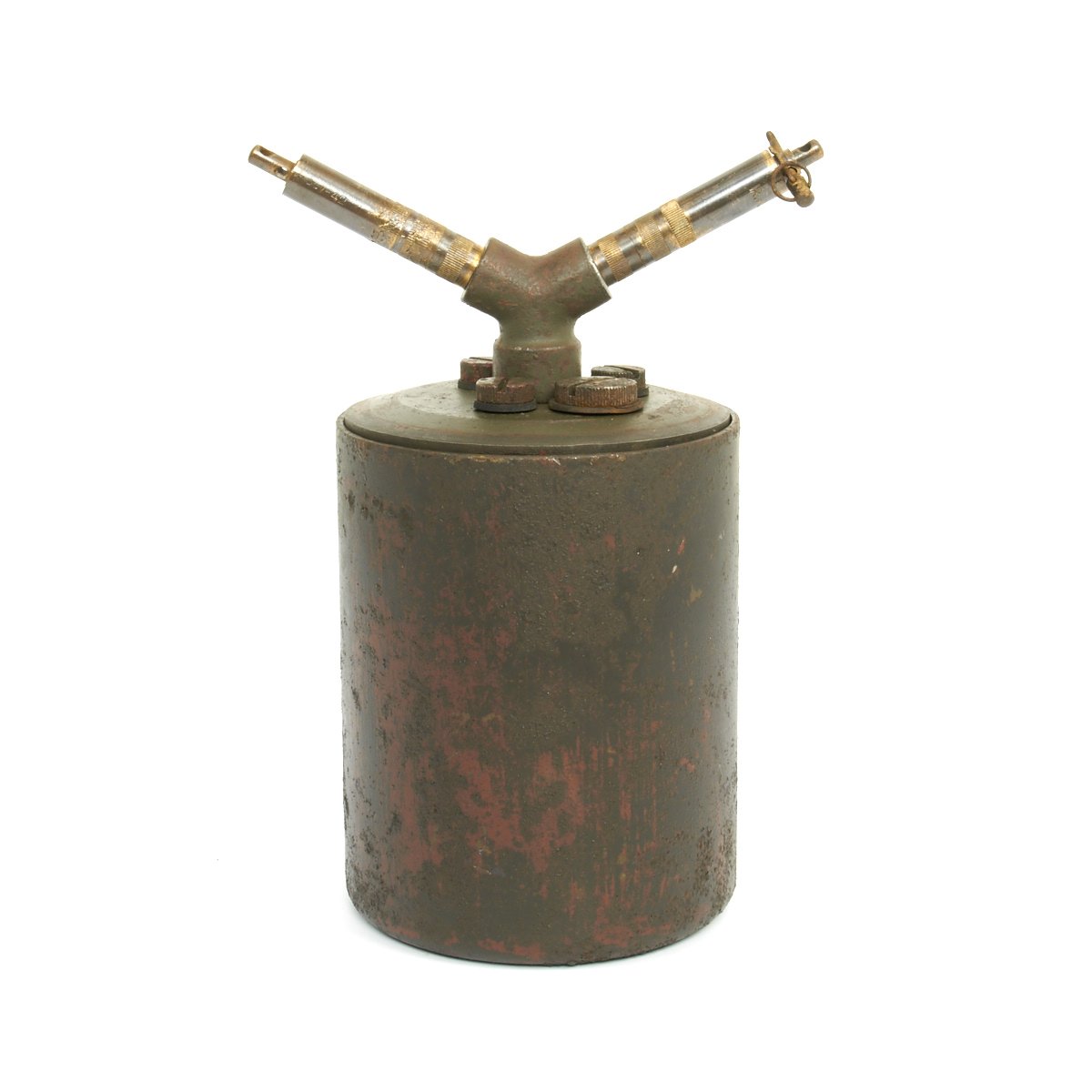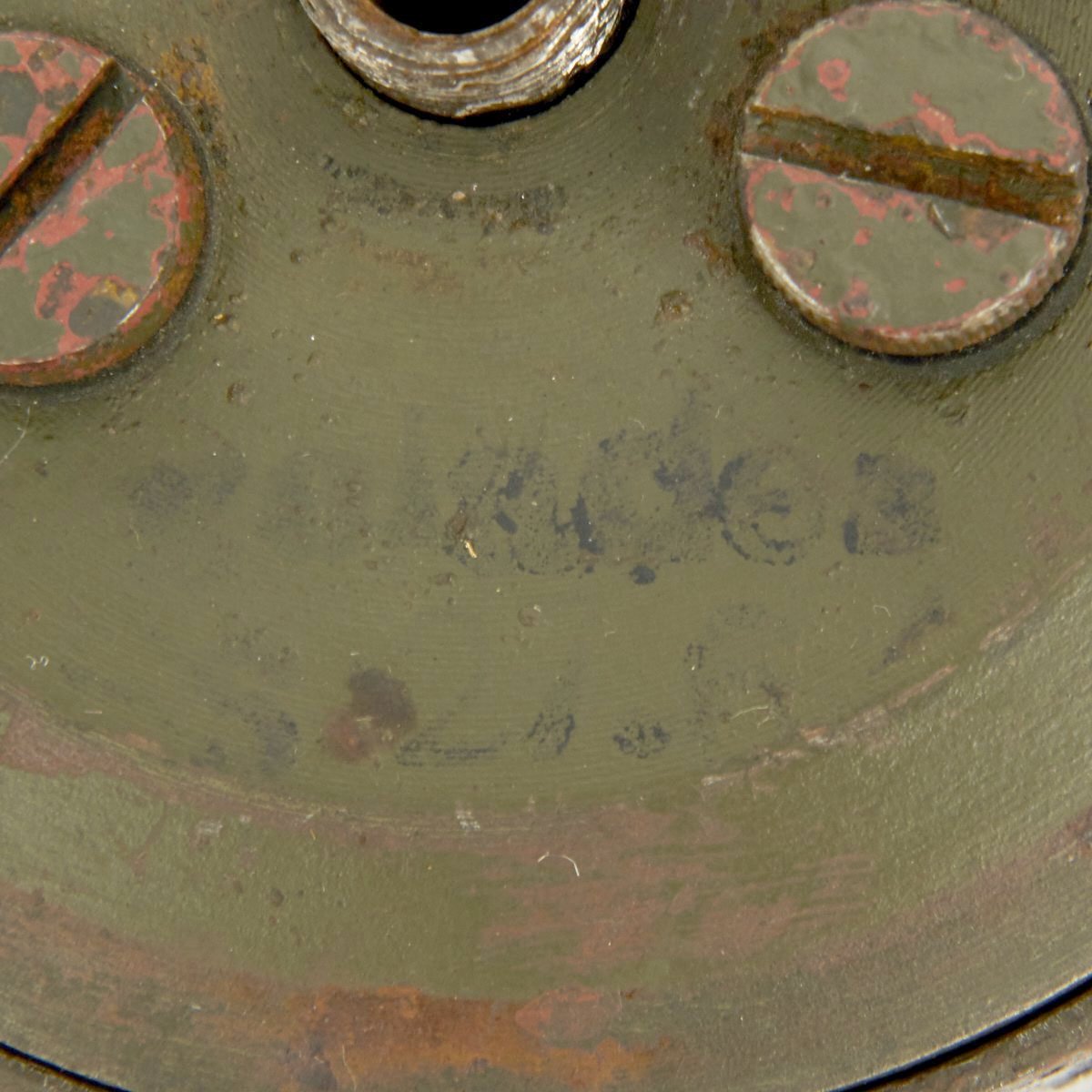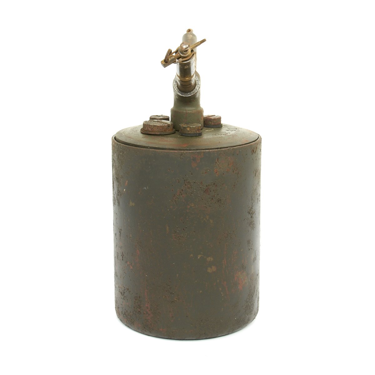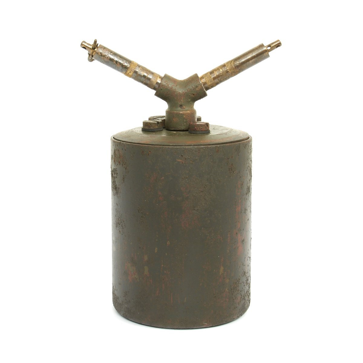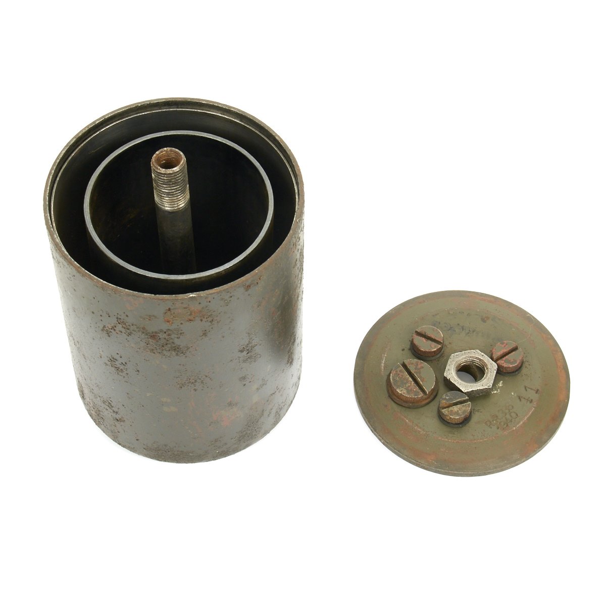 Overall an excellent example of an extremely rare S-mine. A good amount of the original paint is intact, and the original red primer can be seen underneath in places. There is some rust on the exterior, as expected of an item this age. These are banned from import to the USA (and export) so only examples that came back with WWII veterans after the war are available, making these incredibly difficult to find on the collector's market.