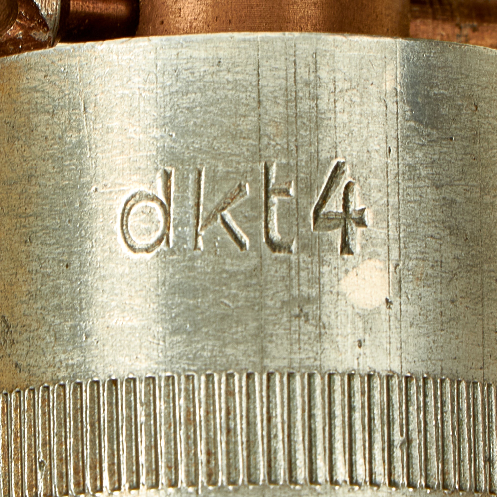 The mine looks to have not been repainted and is very well retained. It is marked on the top with HWS 1939. The pressure fuze is also maker marked and dated ЯR 344 40. This corresponds to the manufacturer Richard Rinker G.m.b.H. in Menden/Iserlohn, and it has the early war "Reverse R" marking. This company was the original designer of the M24 stick grenade. Rinker also had many factories and subcontractors, which is what the number 344 corresponds to.