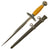 Original Item: Only One Available. This is a very nice example of a mid-war production 2nd Model Luftwaffe dagger, complete with its original scabbard. It is a fine Solingen-Produced example made by the legendary Solingen-based firm of Weyersberg Kirschbaum & Cie. Unlike most example that we see, the celluloid grip of this dagger is still close to the original ivory color! It has faded just a bit to a lovely light amber, like the color of old ivory grips on a sword. These almost always faded to orange or darker over the years as the material degrades due to light exposure. It has a nice slightly tapered shape, and is tightly wrapped with bullion wrapped twisted wire. It is in very good condition throughout, with just a bit of staining and wear, and a great lightly aged look.
