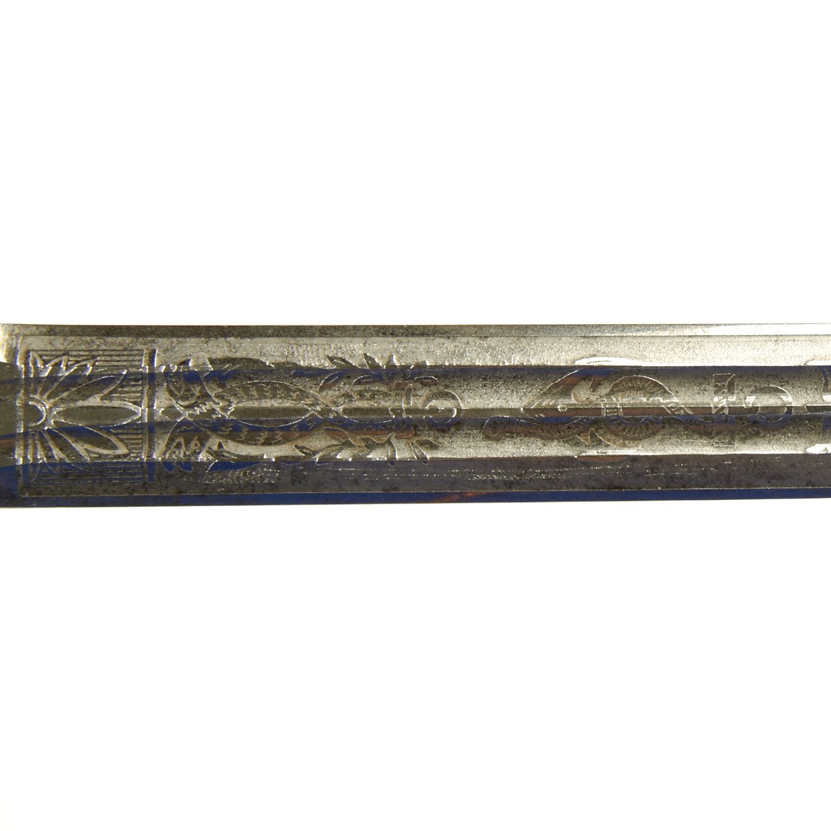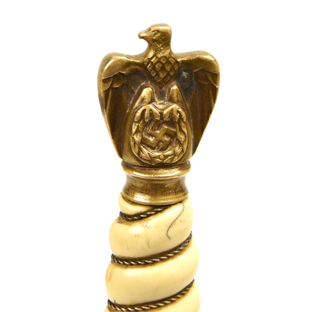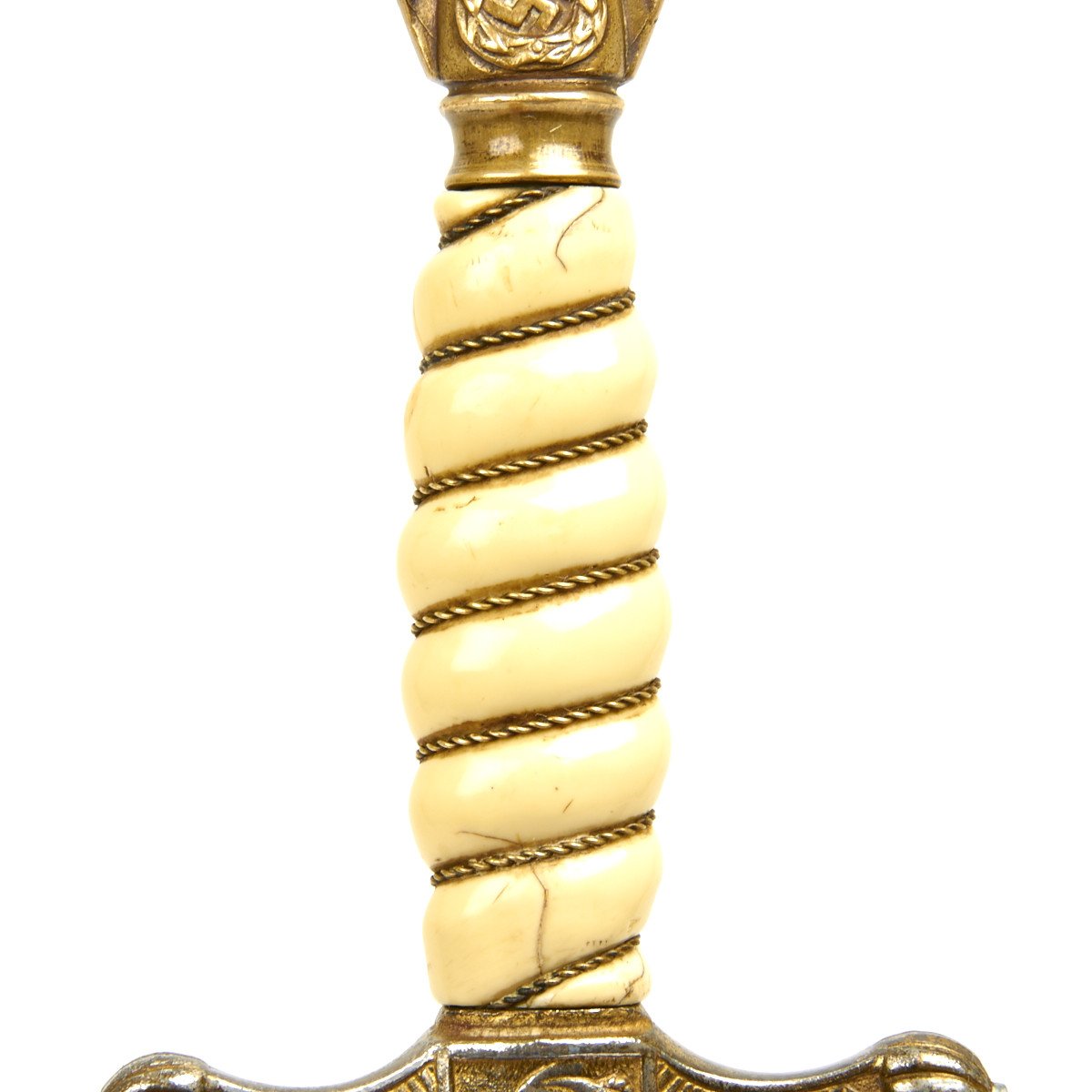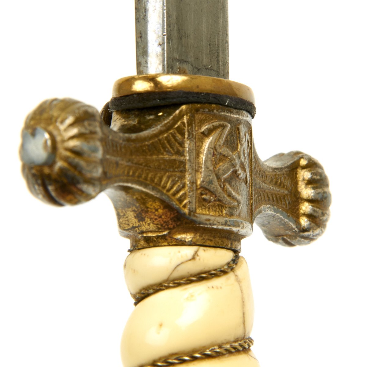 This 2nd Model Naval Dagger was probably purchased by a high ranking officer early in the period as the pommel is a 1938 changeover type. It has very deeply inset wings and an impressive vault wreath. The details to this bird are also choice, with a striking eye, beak and breast. The crossguard is a standard Eickhorn type.
