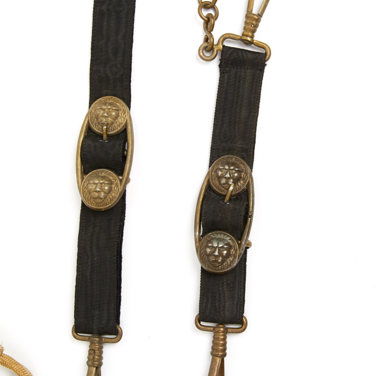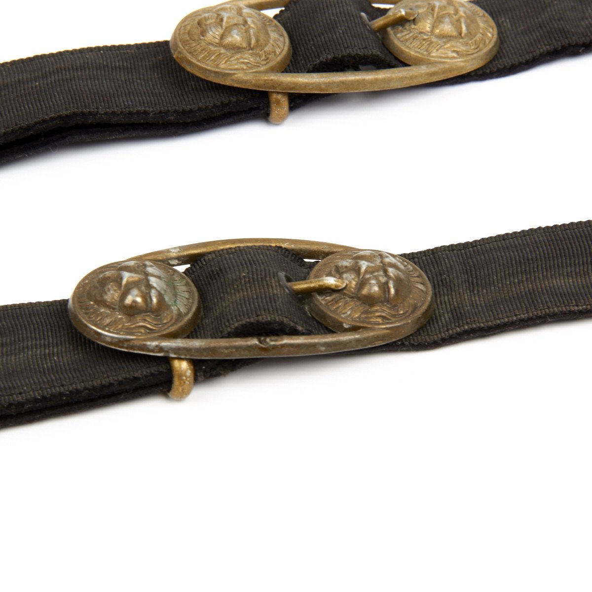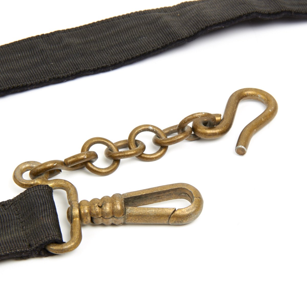 Also included are the original black felt belt hanging straps in excellent condition complete with brass lion head buckles and brass locking snap hooks all in perfect functional condition. These straps were often lost or discarded by USGIs when they captured these as war trophies.