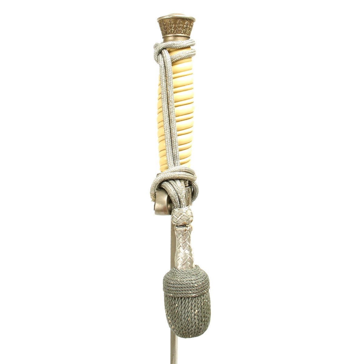 Original Item: Only One Available. This rare C. Gustav Spitzer Army Officer's Dagger is fantastic. Purchased directly from a veteran's family this is the real deal of an extremely hard to find maker for Army daggers. The pommel of this dagger is in excellent condition with excellent leaf work especially by the casting lines. The silvering is completely intact throughout this pommel. The standing oak leaves and acorns are crisply detailed and have good smooth backgrounds.