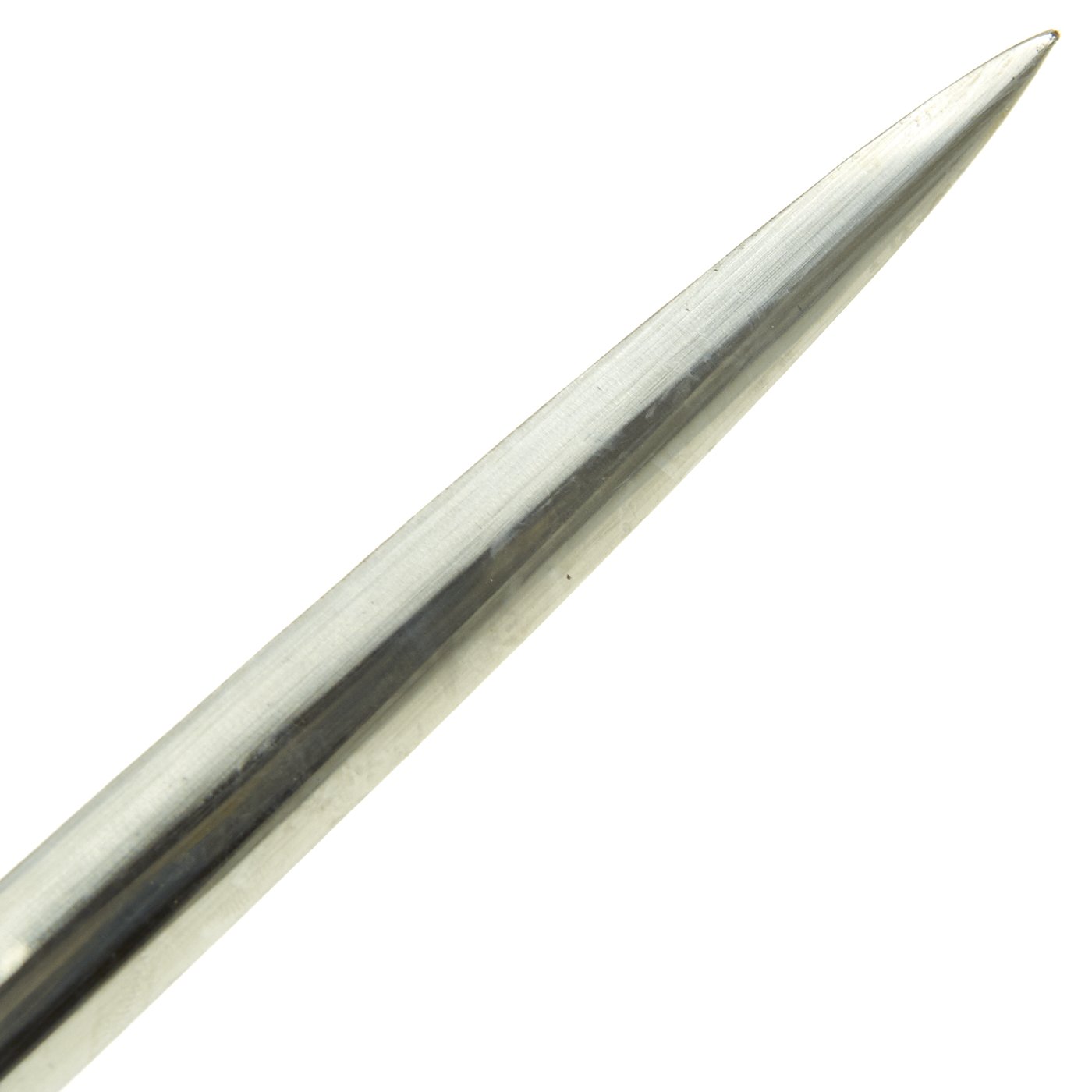 The German Army (Heer) first carried a dagger beginning in 1935. The weapon was worn in lieu of occasions not demanding the wearing of a more formal sword. The dagger design was quite attractive featuring silvered heavy fittings with white or colored grip. The crossguard depicted a Wehrmacht open-winged eagle clutching a wreathed swas.