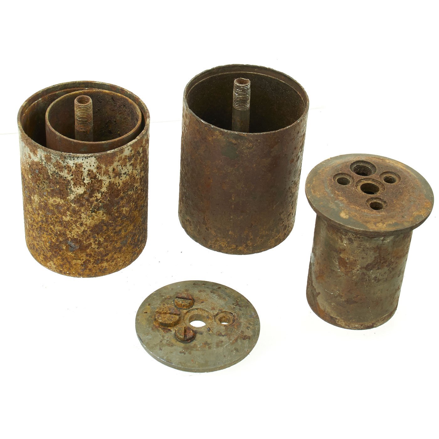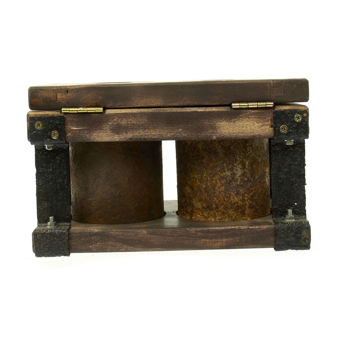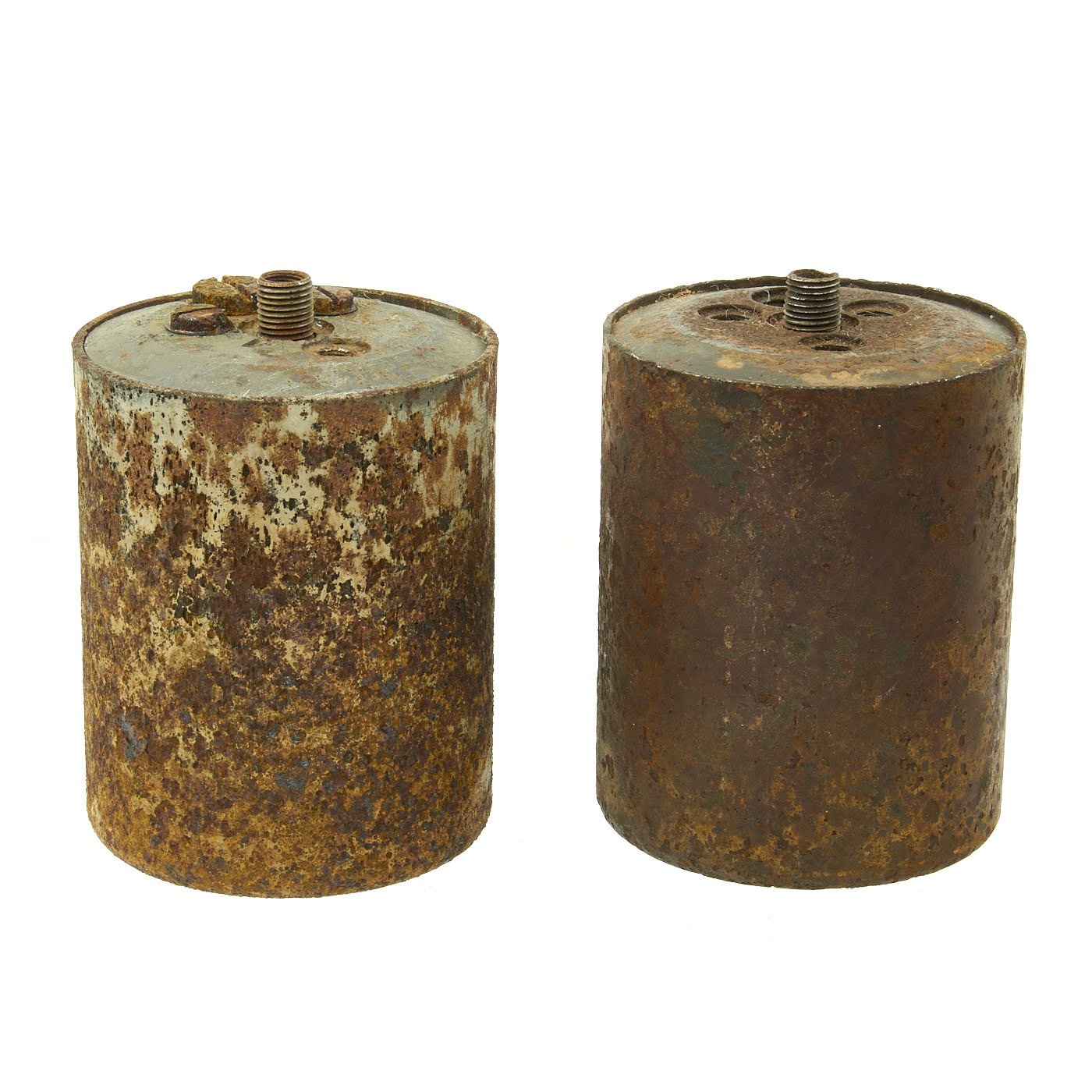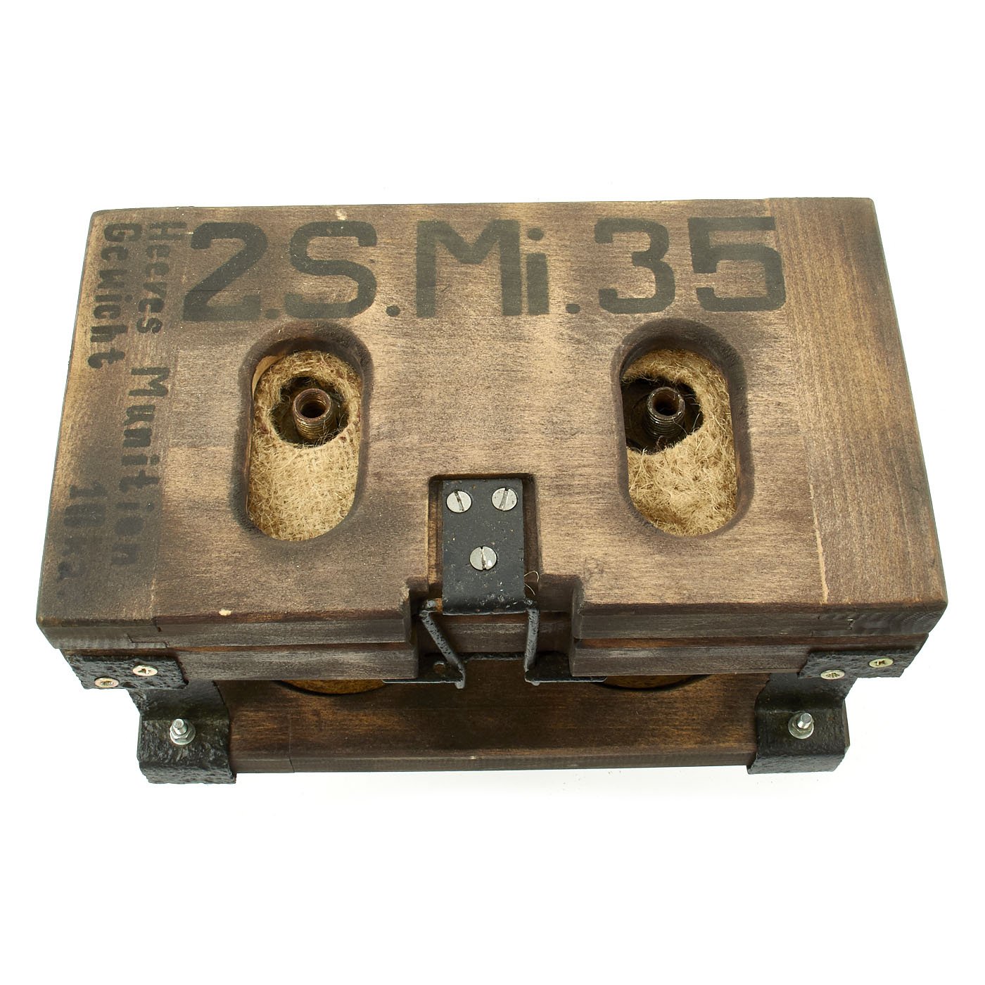Original Item: Only One Set Available. Incredible inert set of two original German WWII S-Mines. Mines come with multiple fuses which are contained in an original bakelite fuze box. Both mines are contained in the original transit frame with locking claps. The metal frame is original WWII which has been restored and painted. The wood is newly added as is the black paint stenciling which is marked on the top SMi-35.