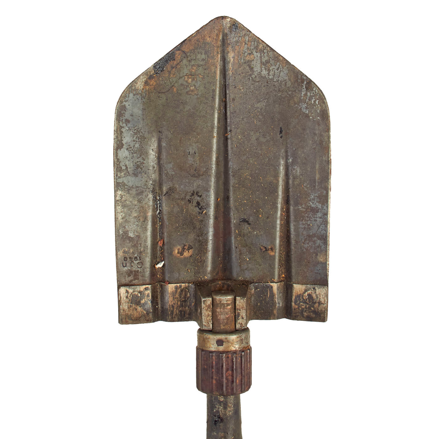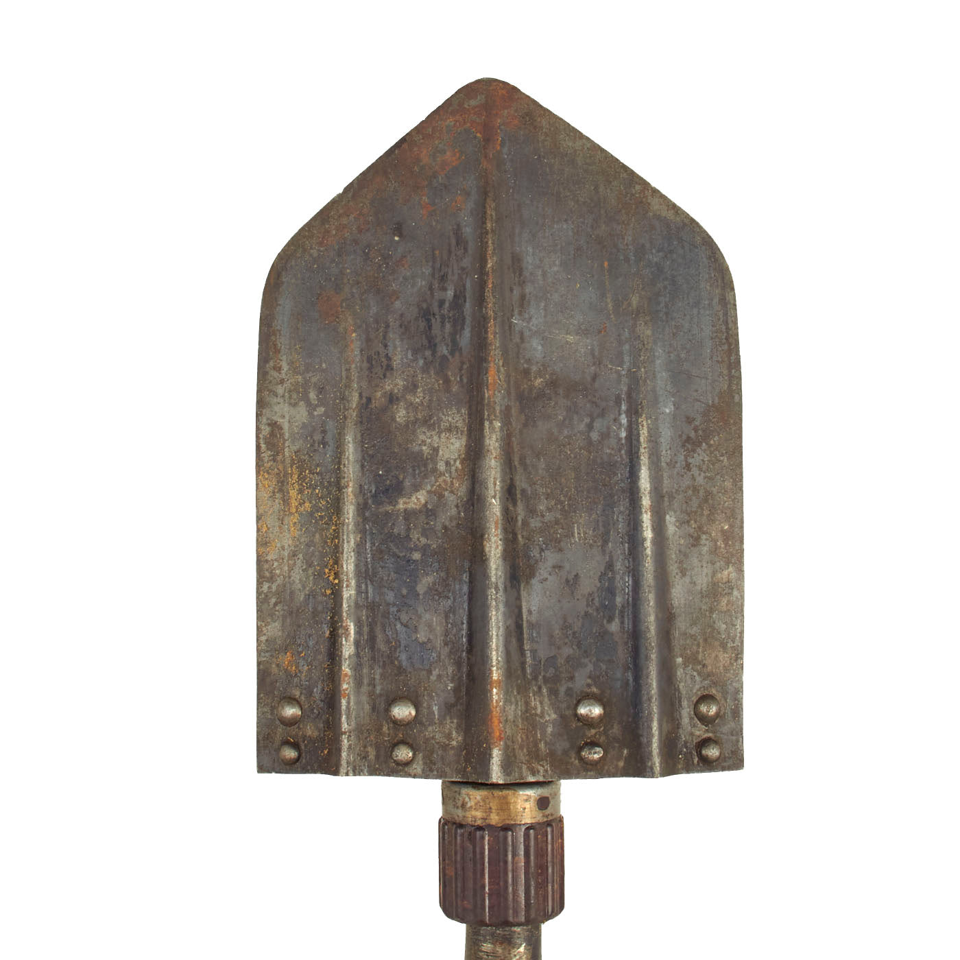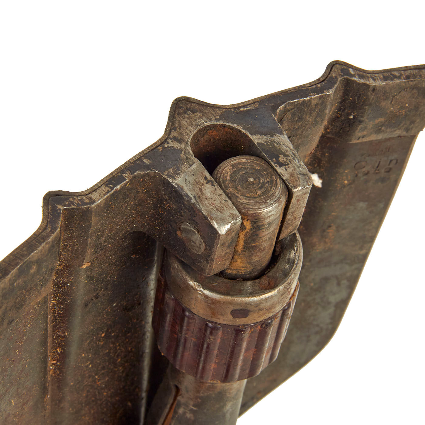 Original Item: Only One Available. In 1938, the klappspaten, or foldable spade, appeared, being the precursor of all modern spades of this kind. Including the 1943 American Copy. Production of the Klappspaten was halted mid-war by its high cost and overlong production time. The end-user was of secondary consideration in this type of decision!