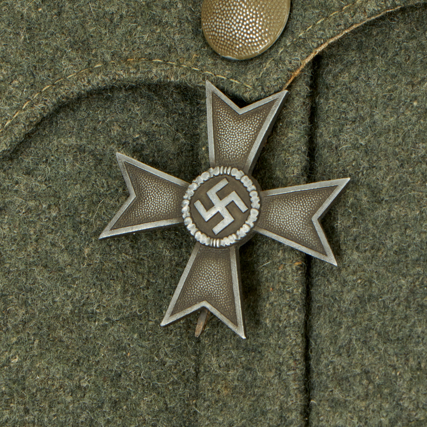 The ribbon of the War Merit Cross was in red-white-black-white-red; that was, the red and black colors being reversed from the ribbon of the World War II version of the Iron Cross. The ribbon for the War Merit Medal was similar, but with a narrow red vertical red strip in the center of the black field. Soldiers who earned the War Merit Cross 2nd Class with Swords wore a small crossed-swords device on the ribbon. The War Merit Cross 1st Class was a pin-backed medal worn on the pocket of the tunic (like the Iron Cross 1st Class). The ribbon of the War Merit Cross 2nd Class could be worn like the ribbon of the Iron Cross 2nd Class (through the second buttonhole). Nonetheless combat soldiers tended to hold the War Merit Cross in low regard, referring to its wearers as being in 'Iron Cross Training'. The Knights Cross of the War Merit Cross was a neck decoration and worn the same way as the Knights Cross of the Iron Cross.