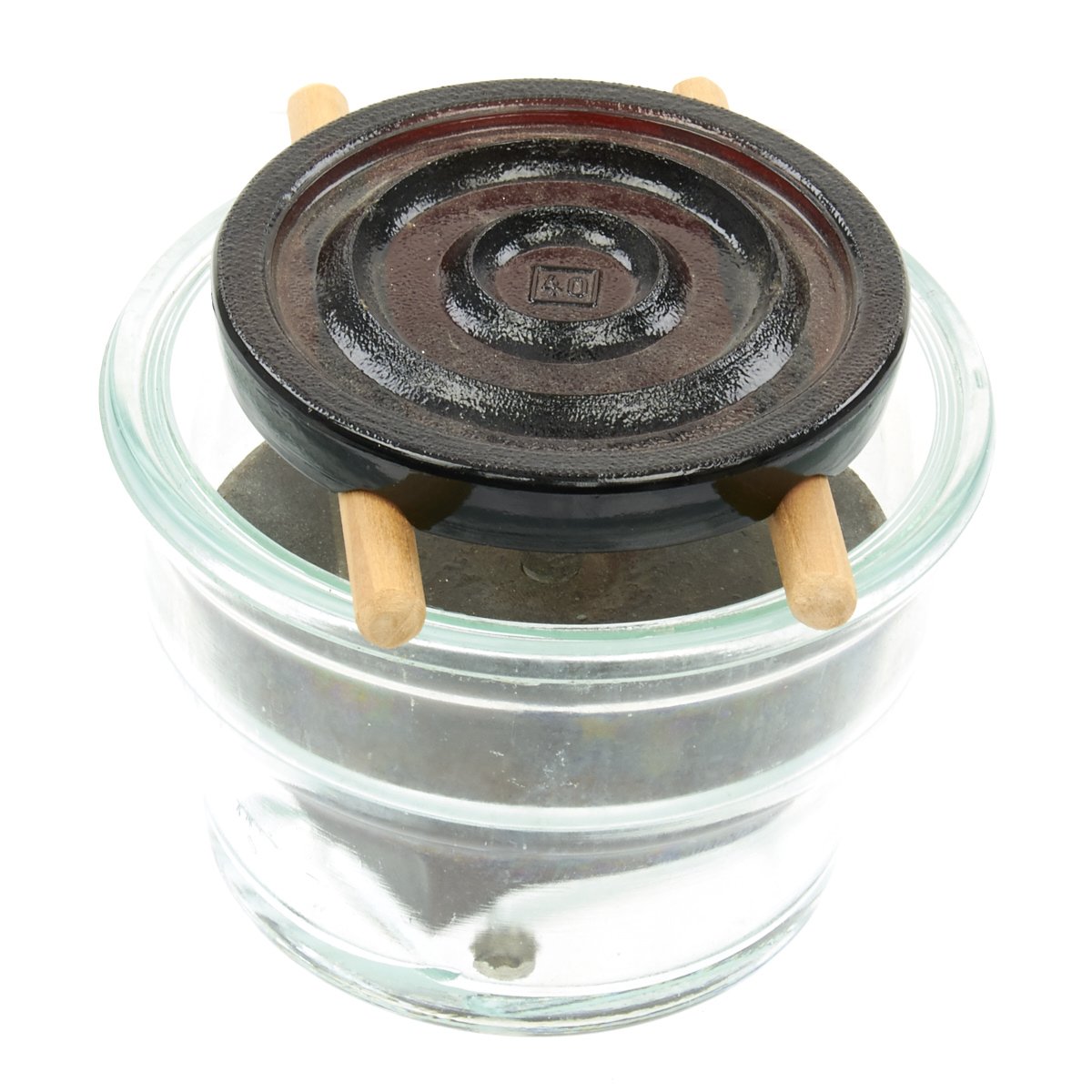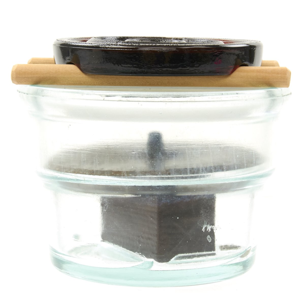 - Glass body with thin glass cover for contents