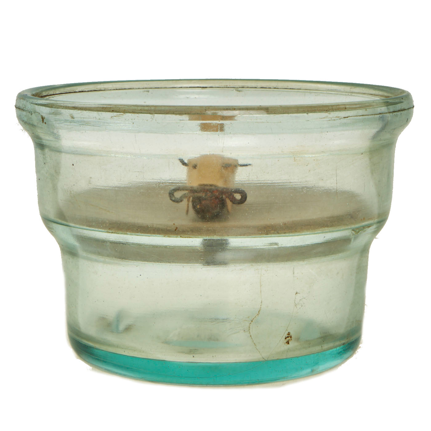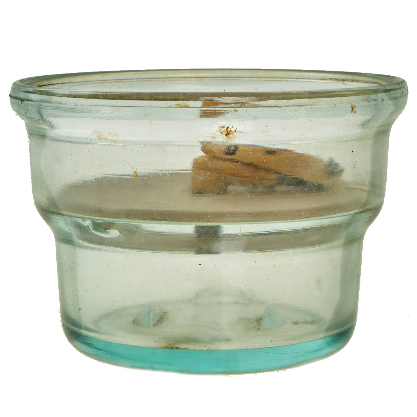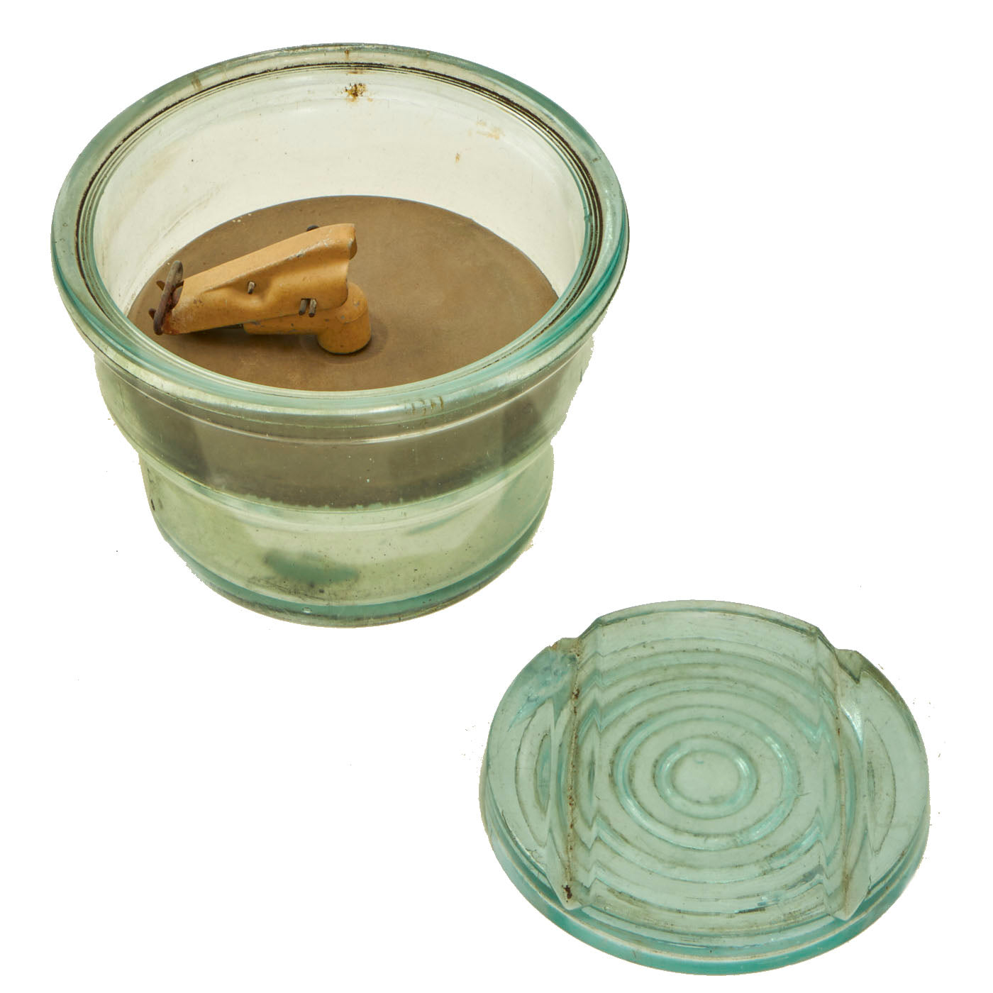 Original Item: Only One Available. The Glasmine 43 was an anti-personnel mine with a glass body used by the Germans during World War II. This mine was an early form of minimum metal mine, designed to with the minimum amount of metal to reduce the likelihood of detection by the Polish mine detector then in use by Allied forces. The reduced use metal was beneficial because it saved this valuable war resource for other uses.