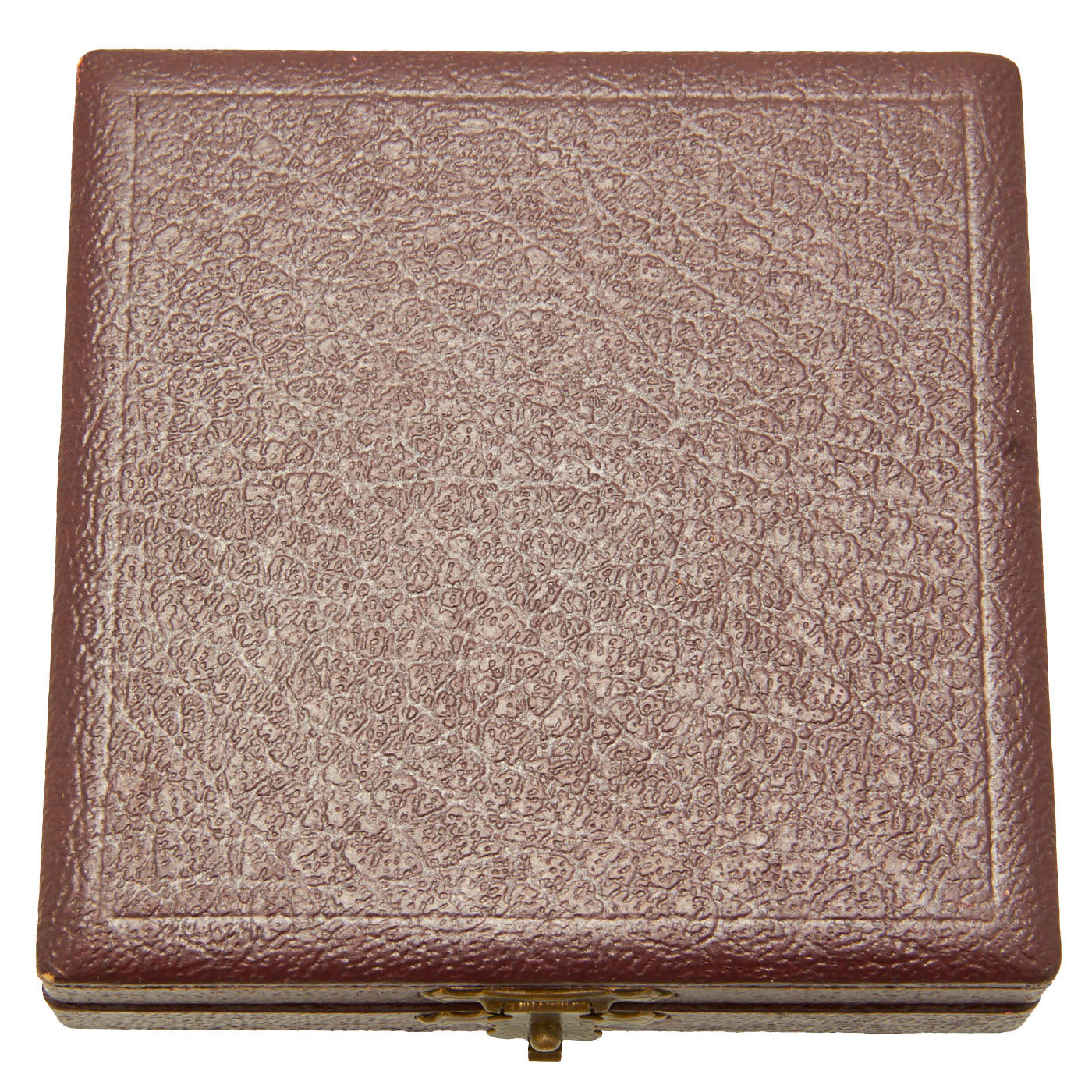 Original Item: Only One Available. This is a very nice German WWII Era Cased Presentation "Table Medal", a large award usually displayed on a shelf or table, as the name implies. The medal itself measures about 2 ¾” in diameter, and is 5mm thick, made of die struck zinc alloy. It comes in a very nice satin and velvet lined case measuring about 4" square, with a functional hinge and lock.
