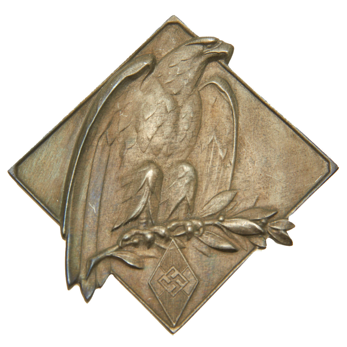 The front of the award features an eagle, wings down clutching a branch with the HJ diamond beneath it. The color is a beautiful bronze now and all designs are still very easily discernible. The reverse of the award has the following text:
