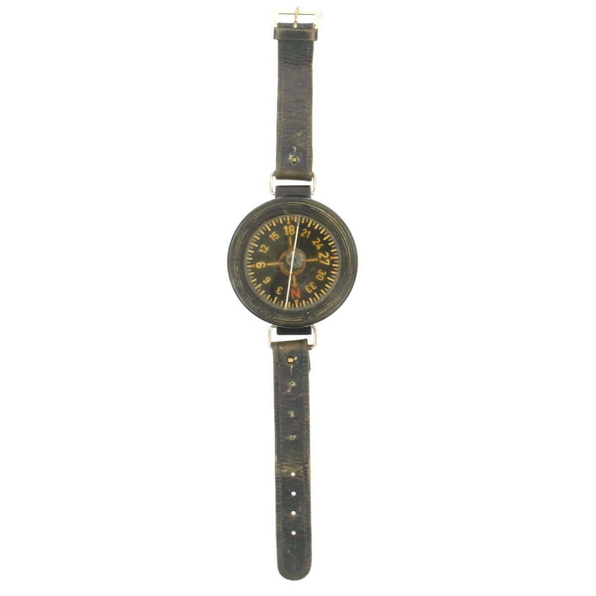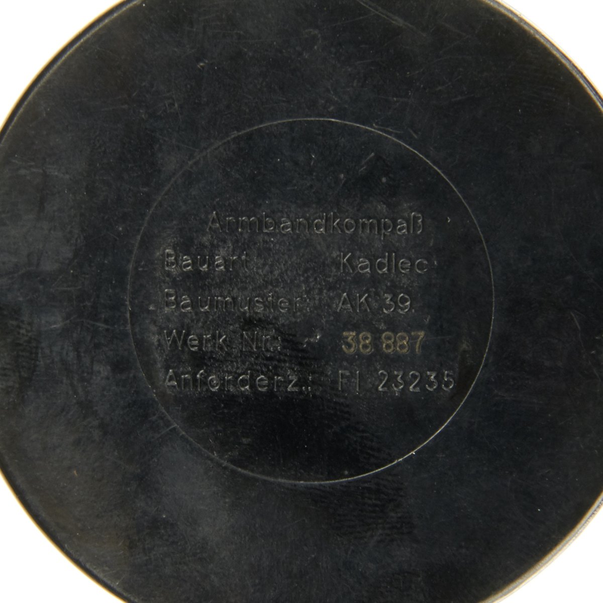 Original Item: Only One Available. Utilized by German pilots during WWII, these wrist compasses were made by Kadlec in Prague, Czechoslovakia and introduced as AK-39 (Armband-Kompass (wrist compass) 1939) to the Luftwaffe. The back of the black bakelite housing is marked with the maker and model information: