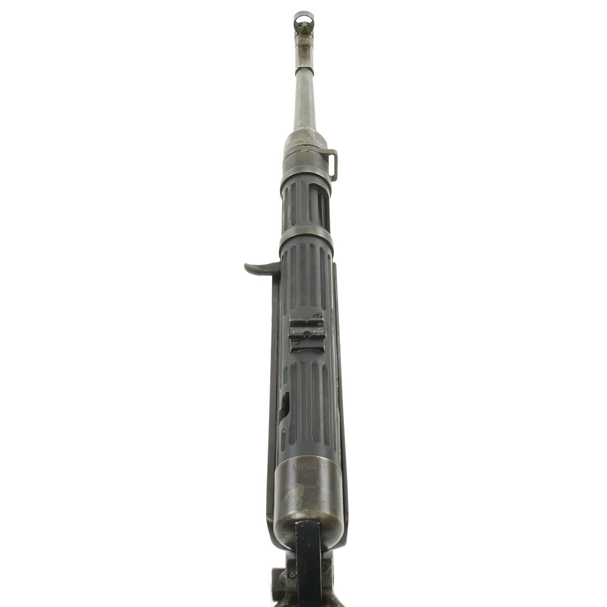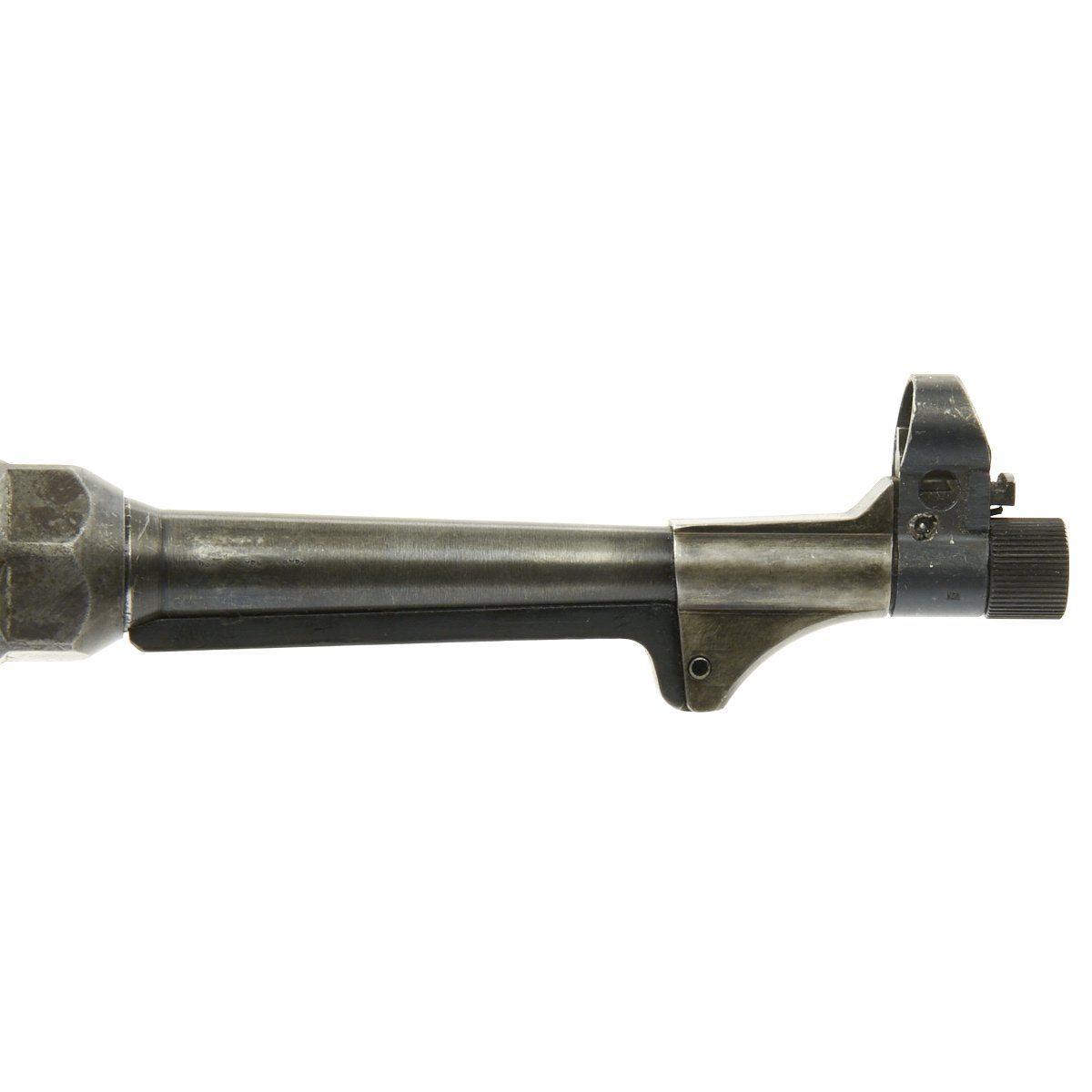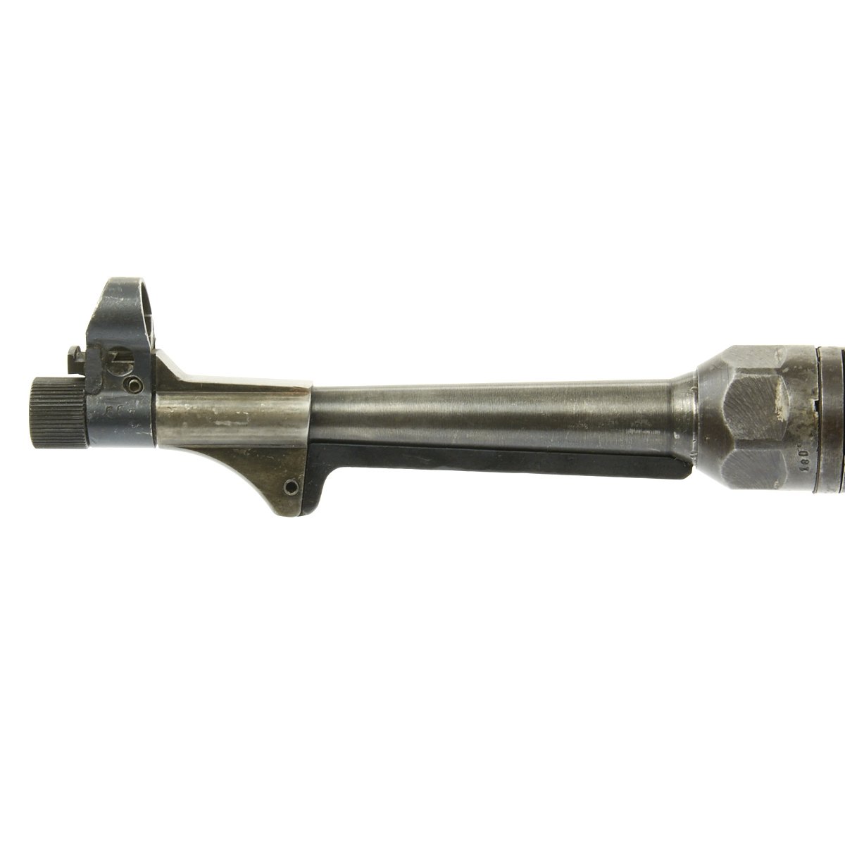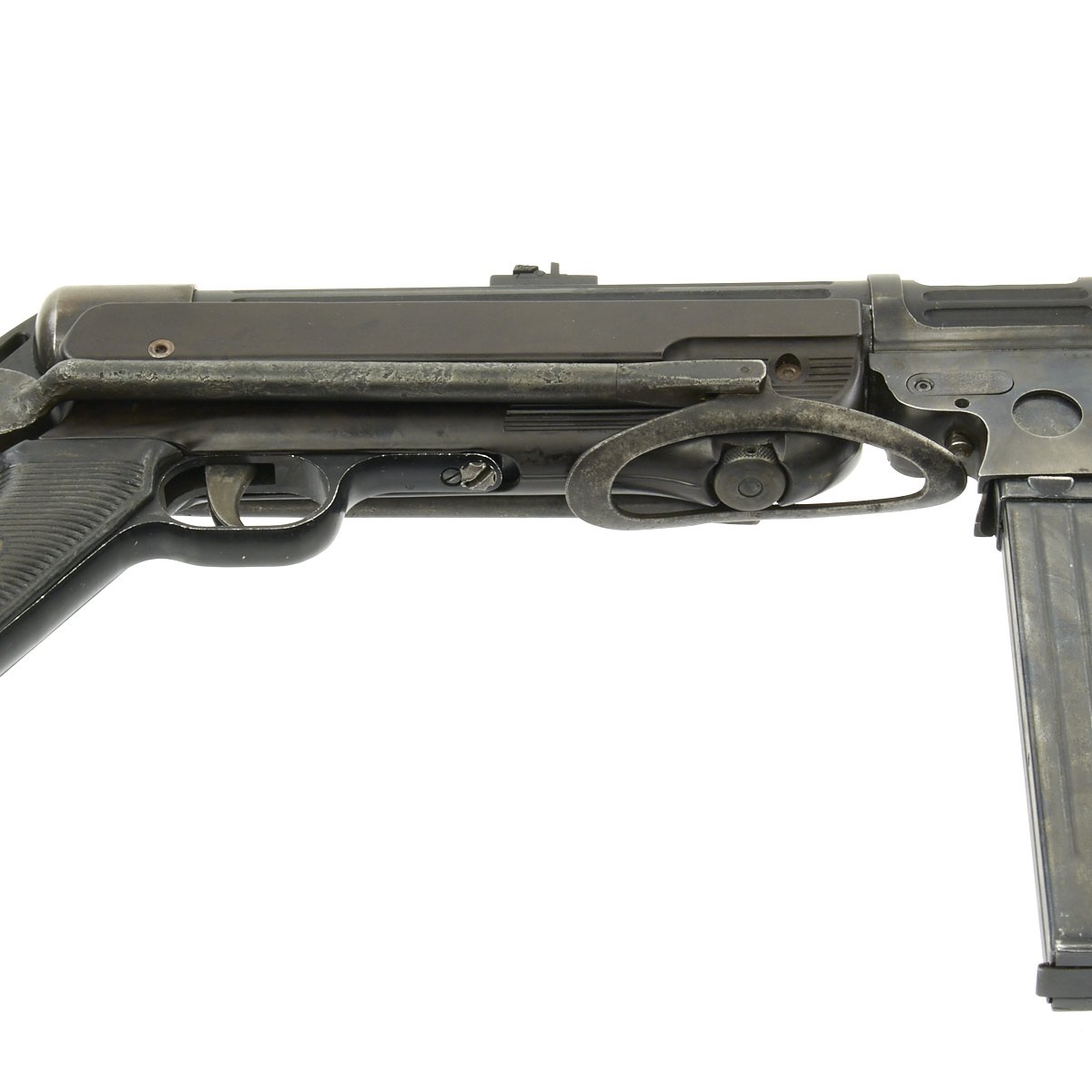 This MP 38 with correct MP38 features of aluminum pistol grip frame, correct rear receiver housing with markings, holed magazine housing and with wonderful replicated MP 38 fluted display receiver and fitted with the original MP 38 upgraded "push/pull" safety bolt handle. All parts are in excellent condition and bear serial numbers (unmatched). The barrel is live having been imported in the 1970s. Magazine is also fully functional but will be deactivated in order to ship to States where prohibited.
