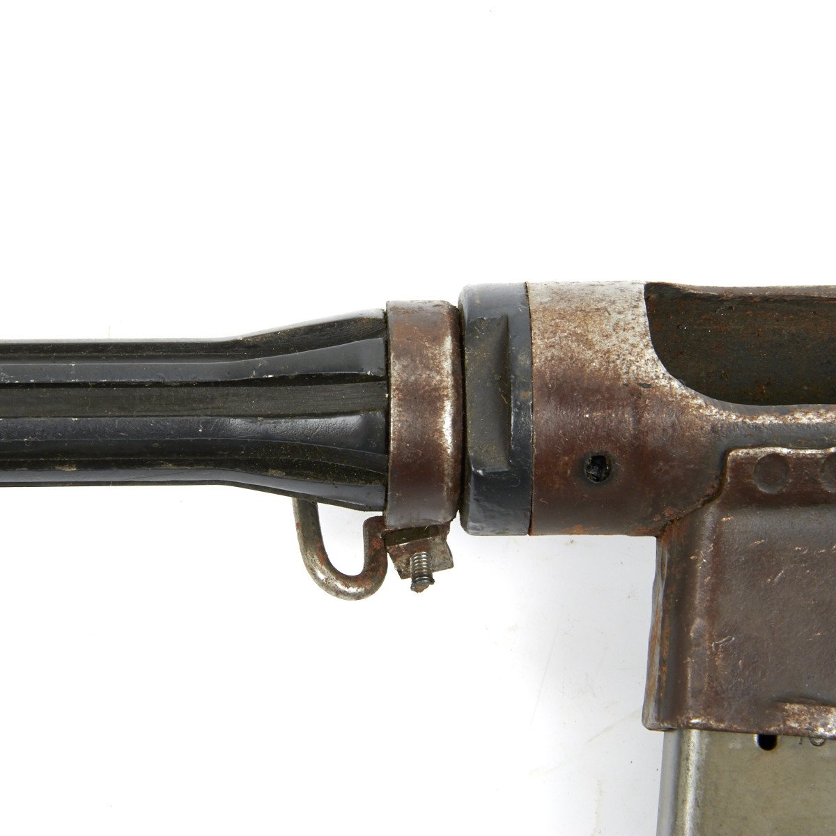 Original Item: The German's used this weapon in such frequency that they gave it an official denotation; The MACHINEPISTOL 738(i), which was also know as the Italian Beretta Model 38/42 fluted barrel Sub Machine Gun. This WW2 Sub Machine Gun was first introduced in 1942 and very quickly became a favorite not only in Mussolini's Italy but with the German Army too! Chambered in 9mm parabellum, this fired the same cartridge as the German Mp 28, MP 34(o), and the legendary MP 38/40 Schmeisser Sub Machine Guns. Surprisingly well built, originally all Italian weapons declined in quality as the war progressed, but the M-38/42 was a stand out exception and remained a great favorite of the Germans as can be witnessed in countless WW2 photographs.