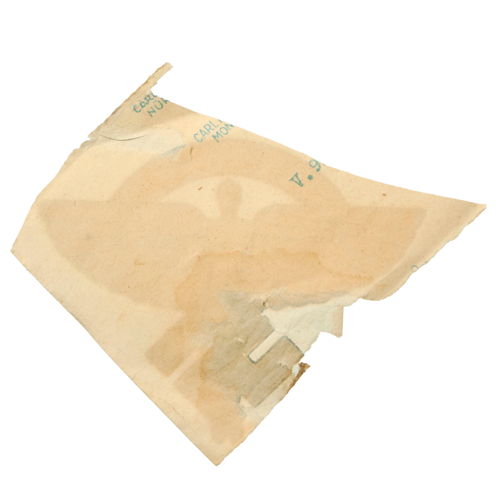 The paper backing itself still has part of the original markings, and what we can see reads CARL / NÜR, which is enough to identify the maker as Carl Schimpf of Nürnberg, a known maker of NSFK and other decals during the WWII period.
