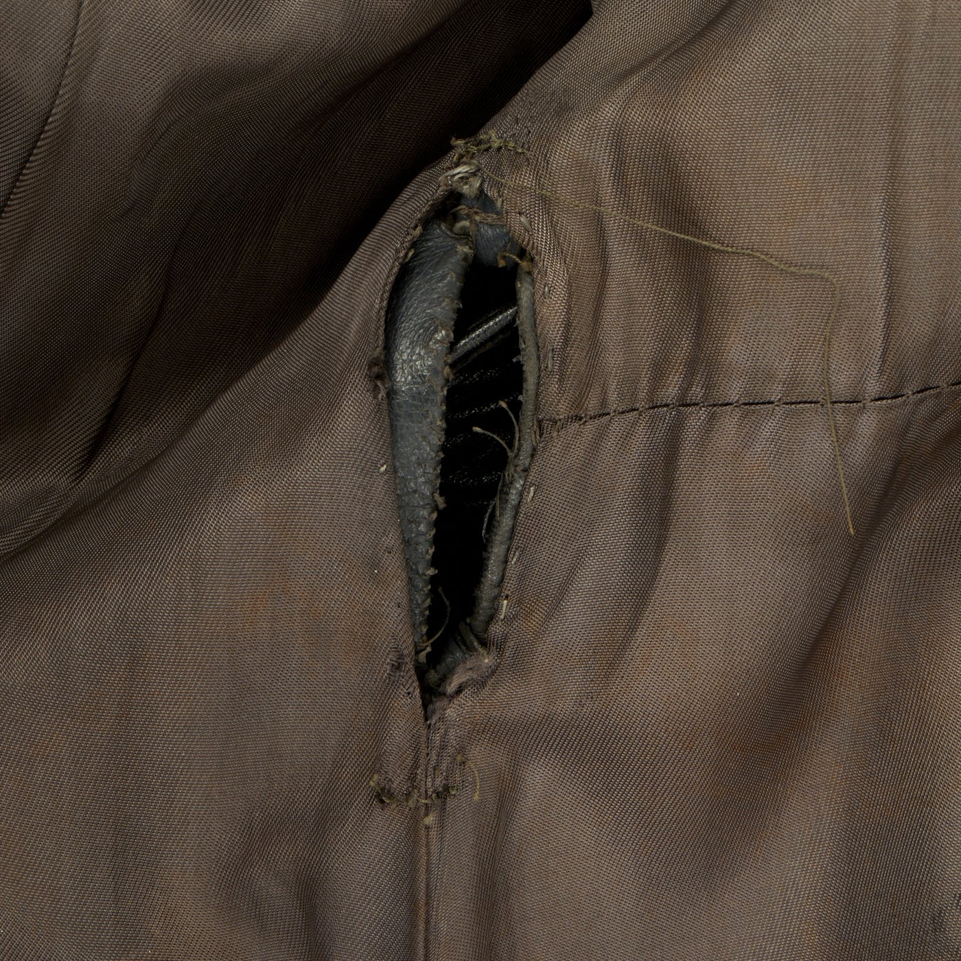 What is unique about this Coat are the military features which indicate this Coat was specifically made with a military officer as its intended wearer. For one, the coat has screw buttons secured on each shoulder to use with shoulder boards. Secondly, the coat has an internal hanger (and hole through the left pocket) from which to suspend a dagger or a sword. In addition, the snaps used on the coat are of the PRYM brand.