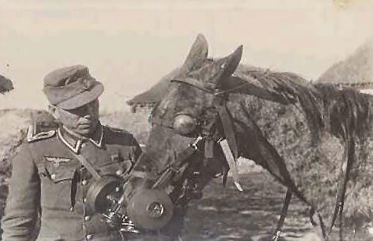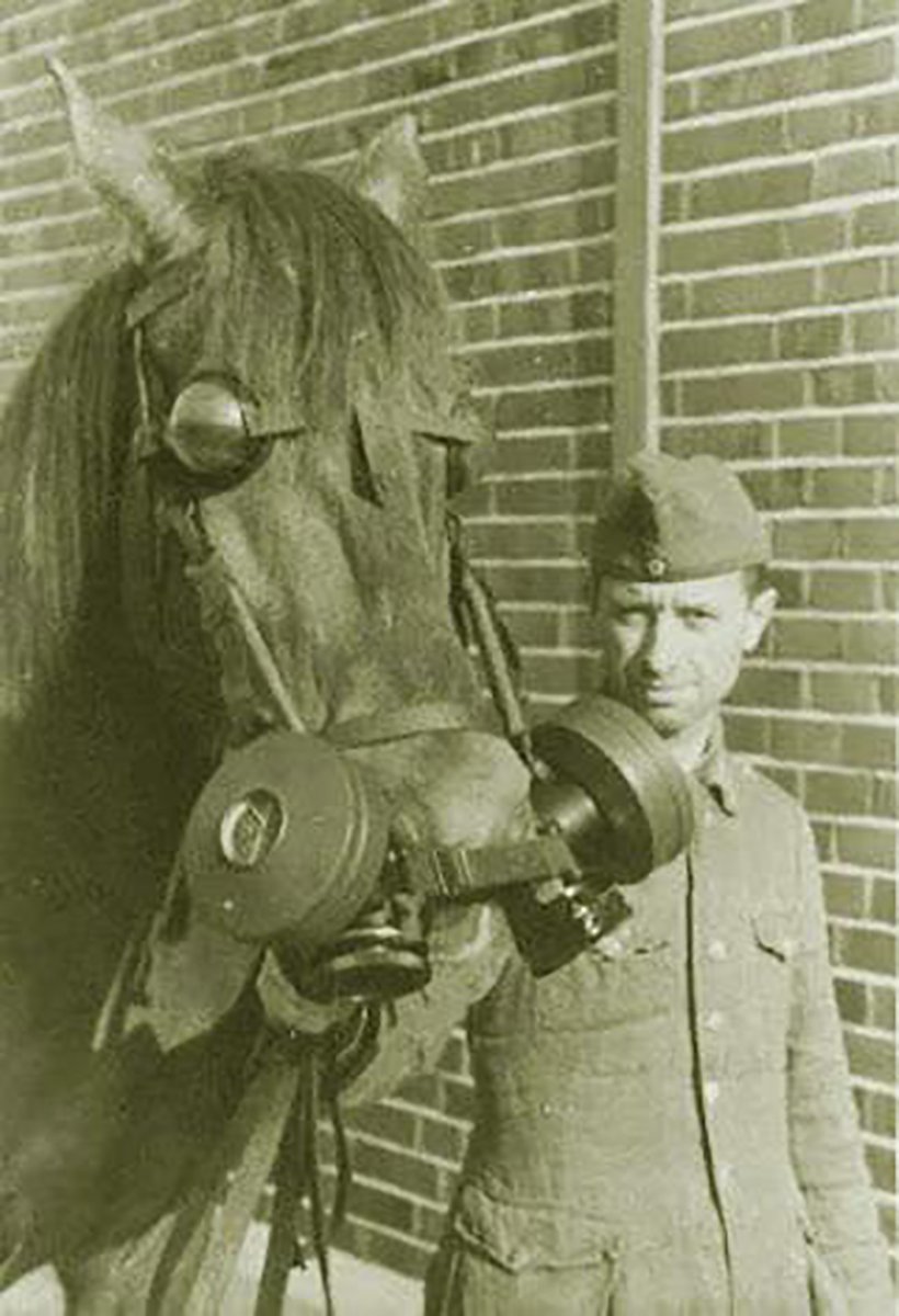 Original Item: Only One Available. These are genuine German WW2 Pferdgasmaske 41 Horse Gas Mask Goggles which were originally intended for use on horses in conjunction with a gas mask. The webbing between each eye piece has been hand sewn together to fit a human.