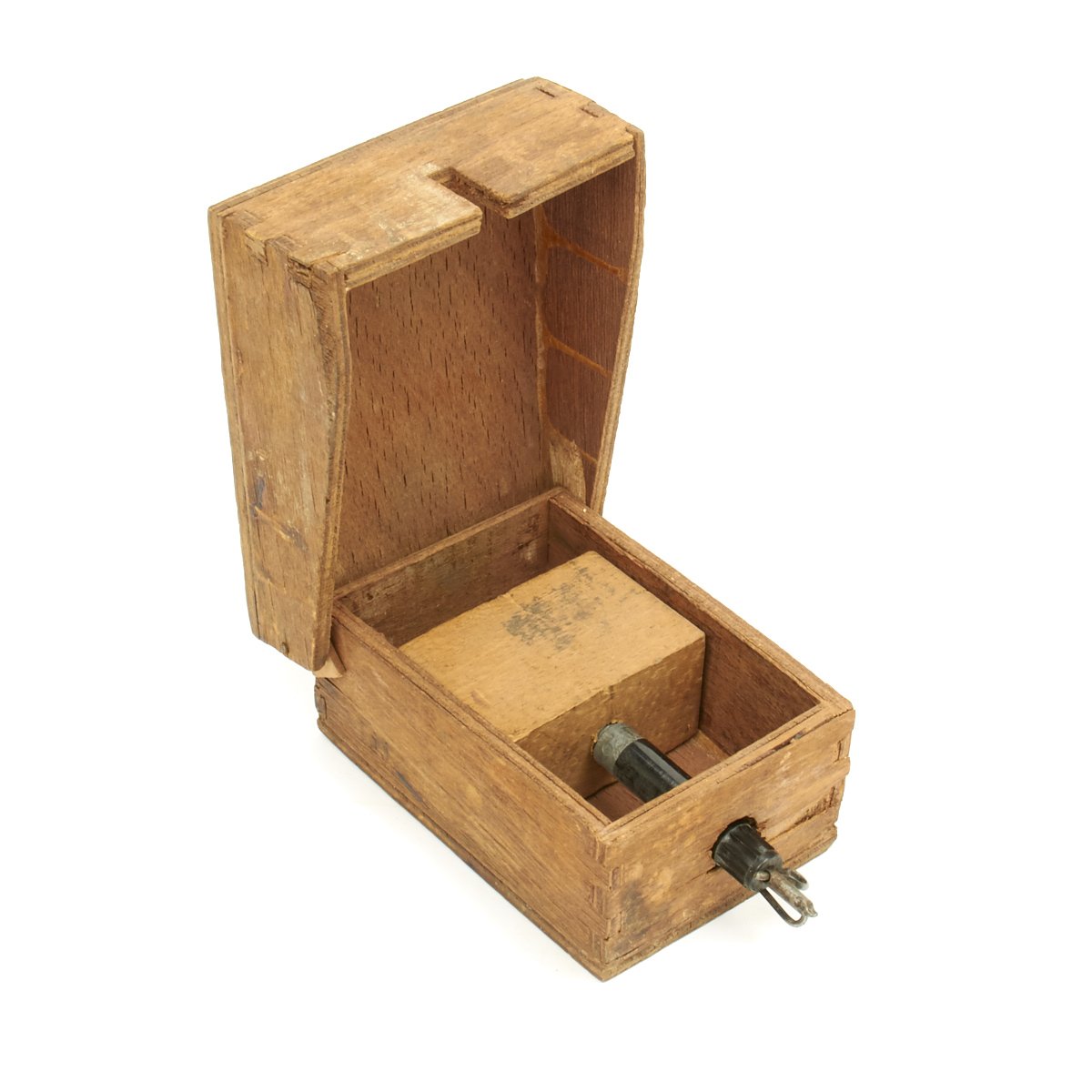 Original Item: Only One Available. This is a totally original WWII German produced inert Schützenmine 42. It comes complete with wood body and correct bakelite fuse with replicated wooden explosive block. It measures approximately 5" x 4" x 3".