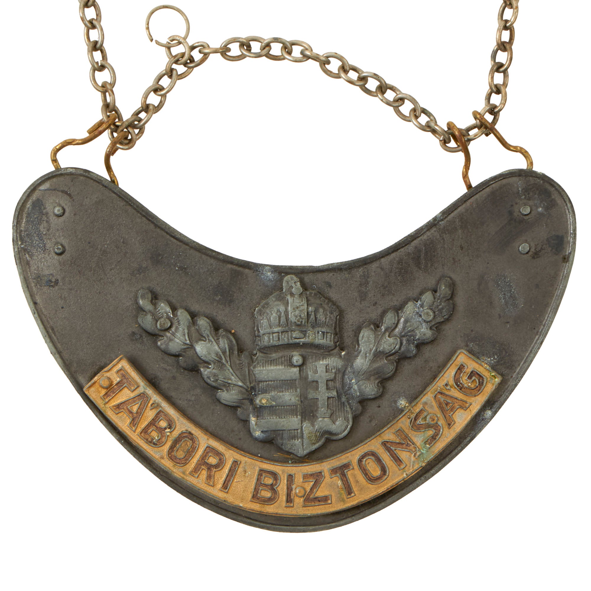 Original Item: Only One Available. Gorgets hold an interesting place in history, as they are a throw-back to the days of medieval knights, when suits of armor included a neck protection device called a Gorget. They have been used since then to identify membership or function in various military and law enforcement organizations, and Gorgets were thoroughly used throughout the Third Reich. During WWII, Hungary was on the side of the Axis powers, and also issued gorgets for certain positions as Germany had.