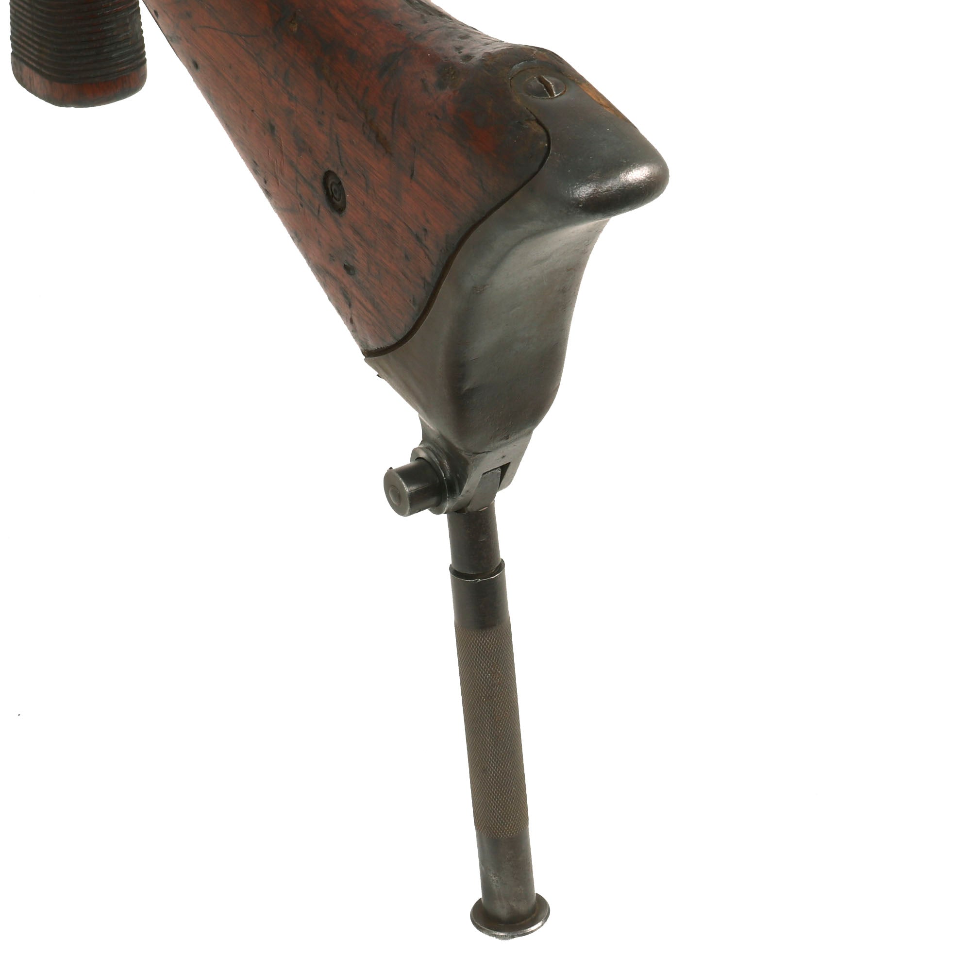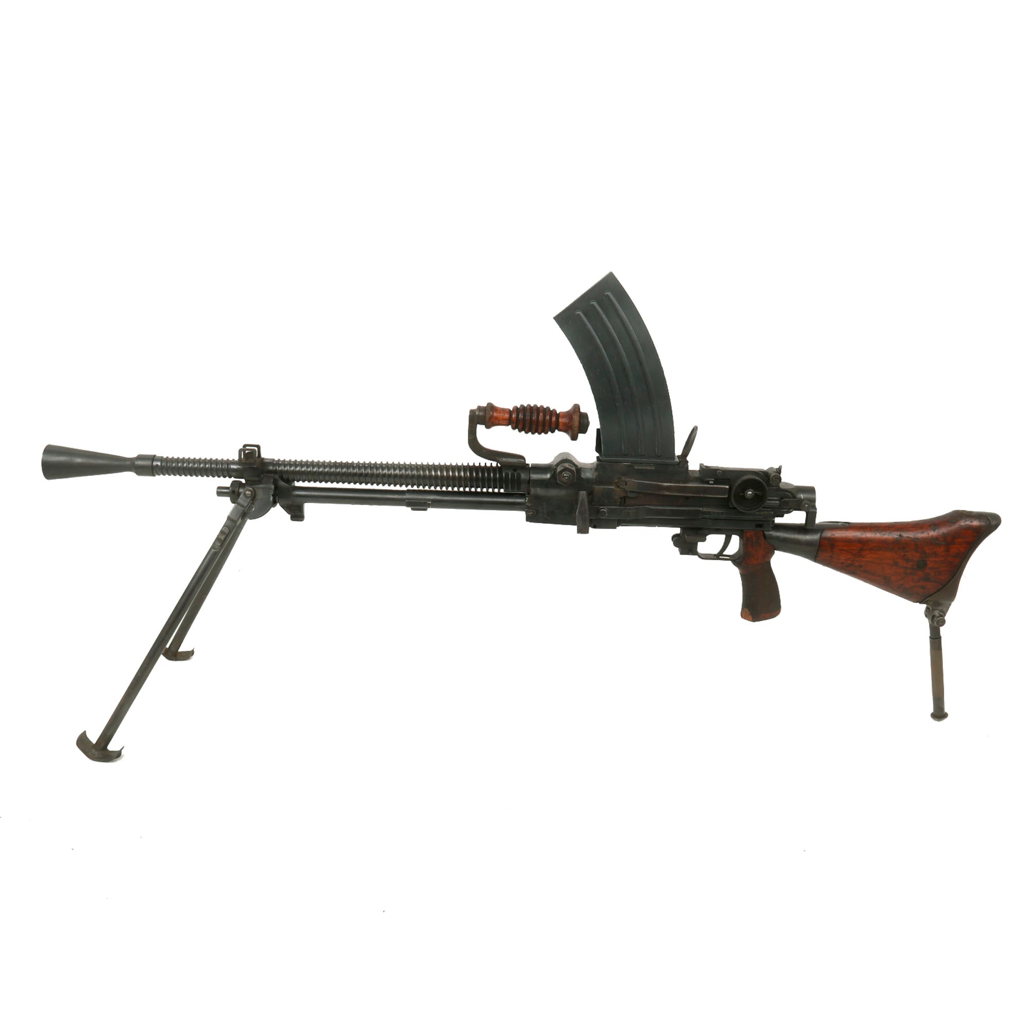 Original Item: Only One Available. Japanese machine guns very rarely show up for sale, so we are especially proud to offer this fantastic BATF approved non-firing original example. Constructed from a legally demilitarized (de-milled) parts set, this is a wonderful and rare Imperial Japanese WWII Type 99 Display Light Machine Gun. It is built using original parts on an original BATF compliant non-firing display receiver, making this a 100% legal display machine gun. This receiver was created by using portions of the original torch cut receiver, including the barrel bushing, combined with some new made steel portions. It has properly had a 25% section of the total length completely replaced entirely with solid steel bar stock. Meaning a 1/4 length section of the display receiver is solid steel, making this totally legal to own without a license of any kind.
